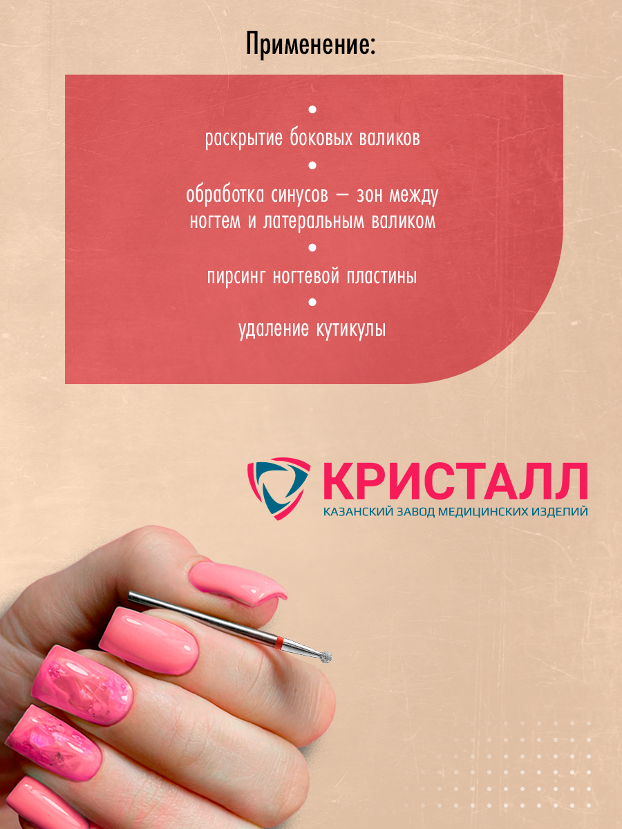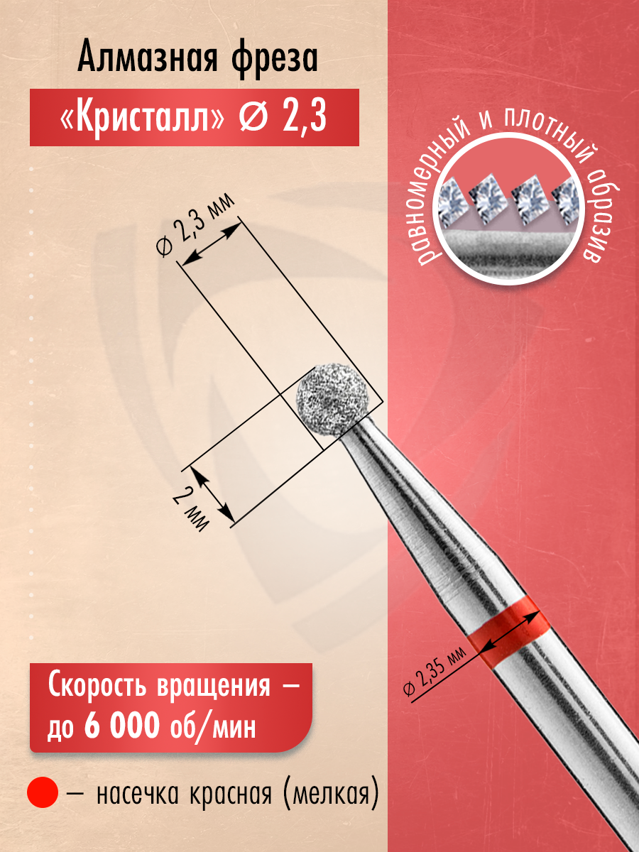 Кристалл, набор фрез алмазный шар 856.104.001.020.023 L020 (мягкая, d2.3мм), 5 шт интересное: