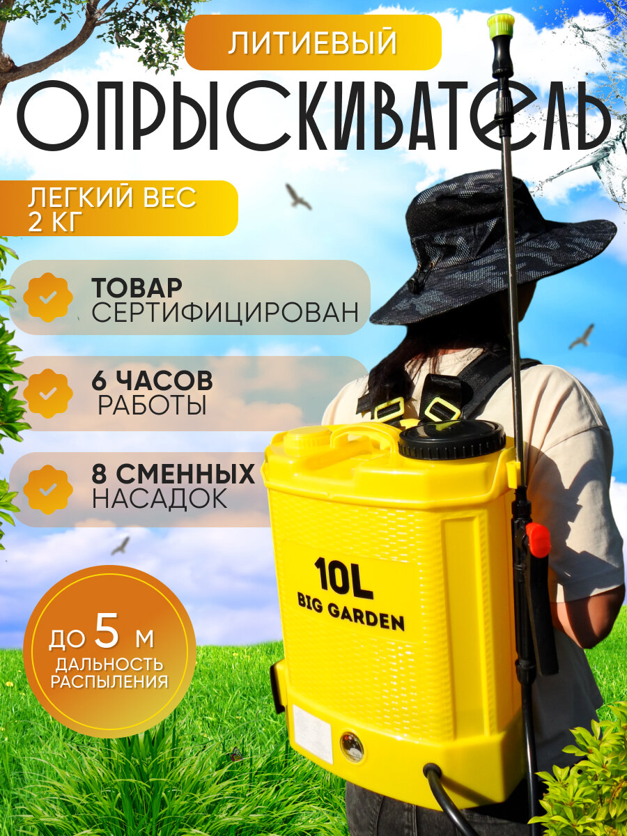 Опрыскиватель аккумуляторный литиевый для растений 10 л BIG GARDEN интересное: