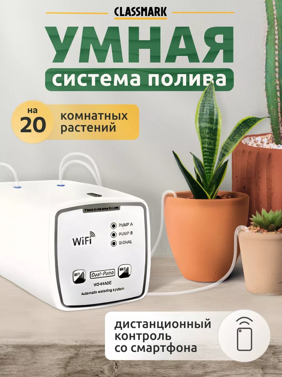 Капельный полив Classmark автополив для комнатных растений и цветов, дистанционное управление по Wi-Fi, питание от сети и батареек, белый