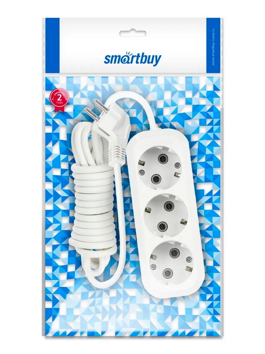 Удлинитель SmartBuy SBE-16-3-1,5-Z, 3 розетки, с/з, 16А / 3500 Вт белый 1.5 м 1 м² 3 6