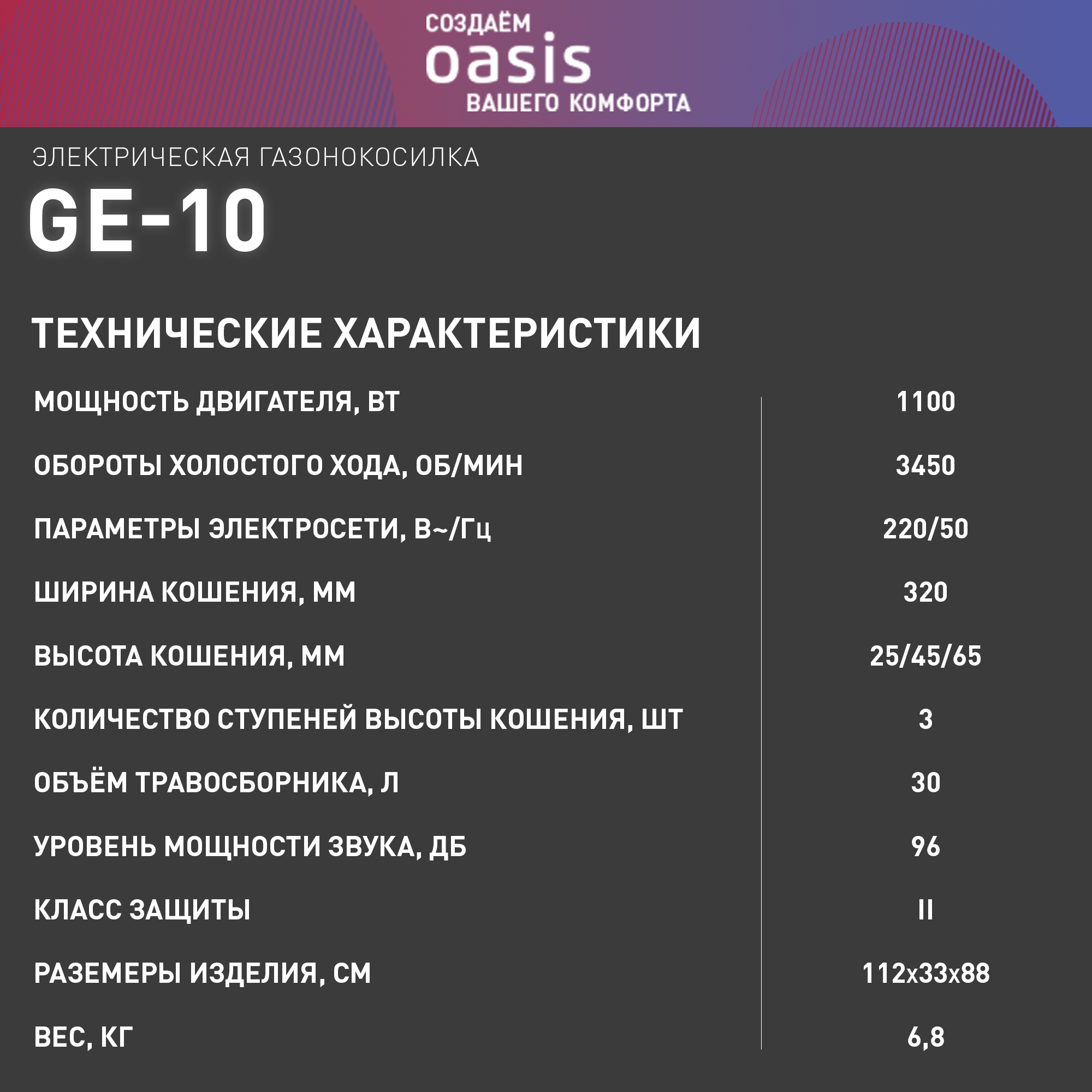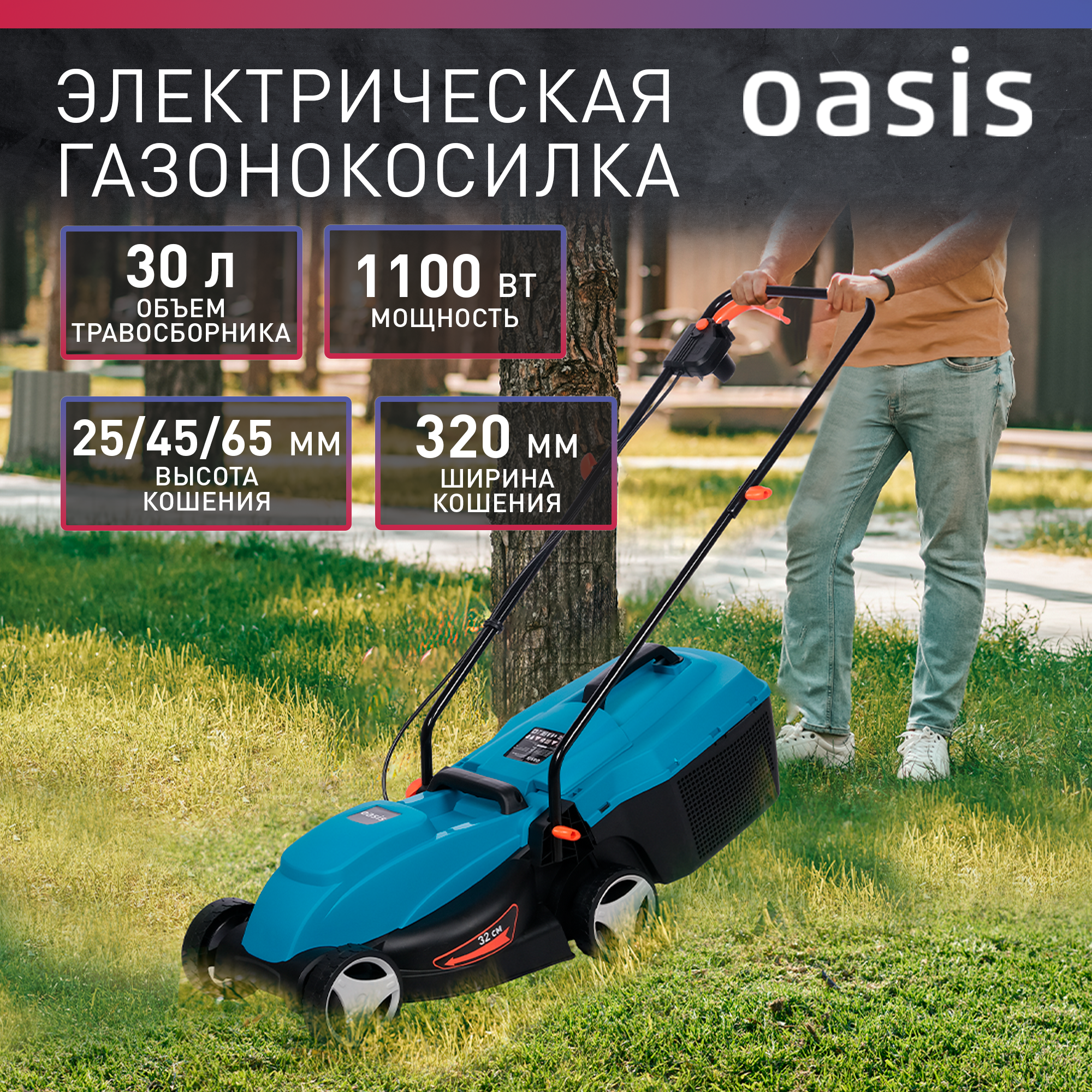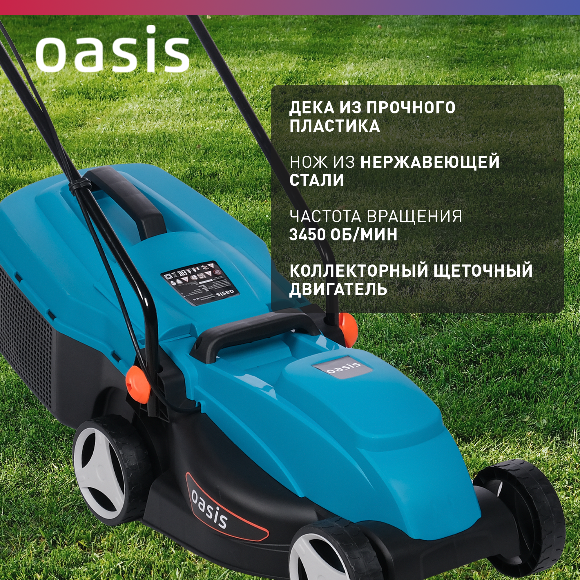 Газонокосилка электрическая садовая Oasis GE-10_206, 1100 Вт, 3450 об/мин интересное: