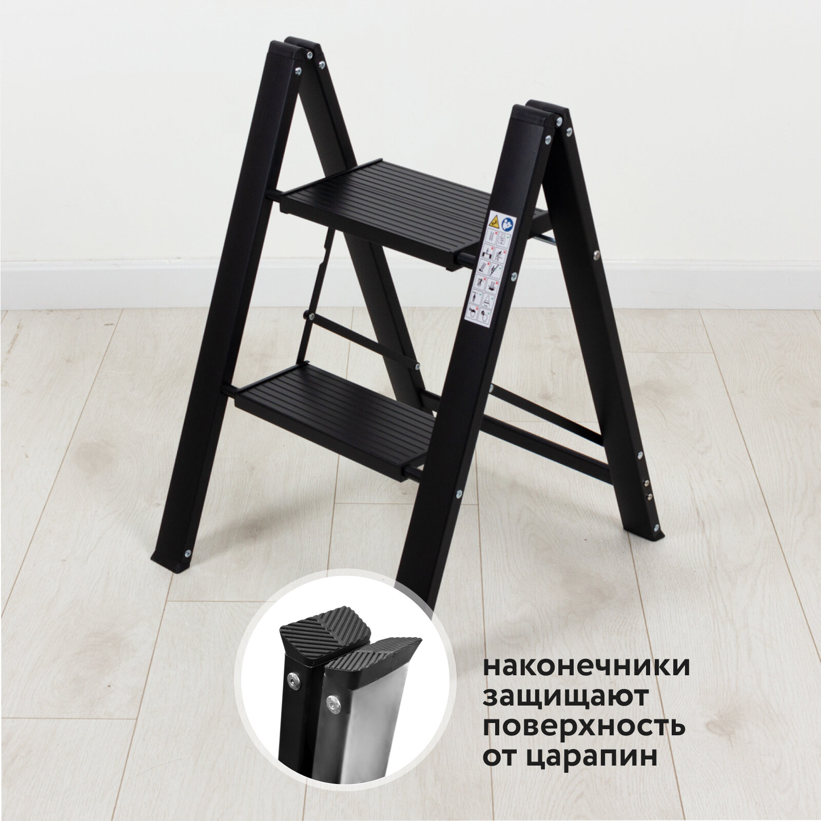 Стремянка "Joy Home" 2-х ступенчатая черная алюминий, пластик