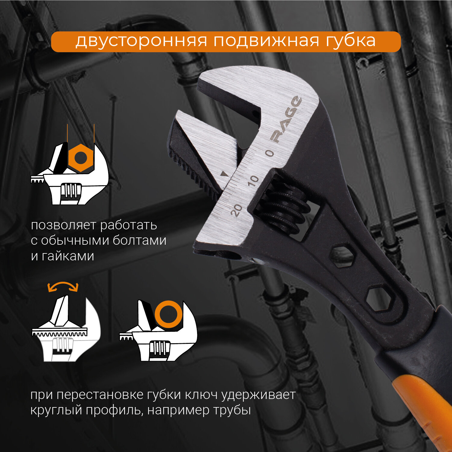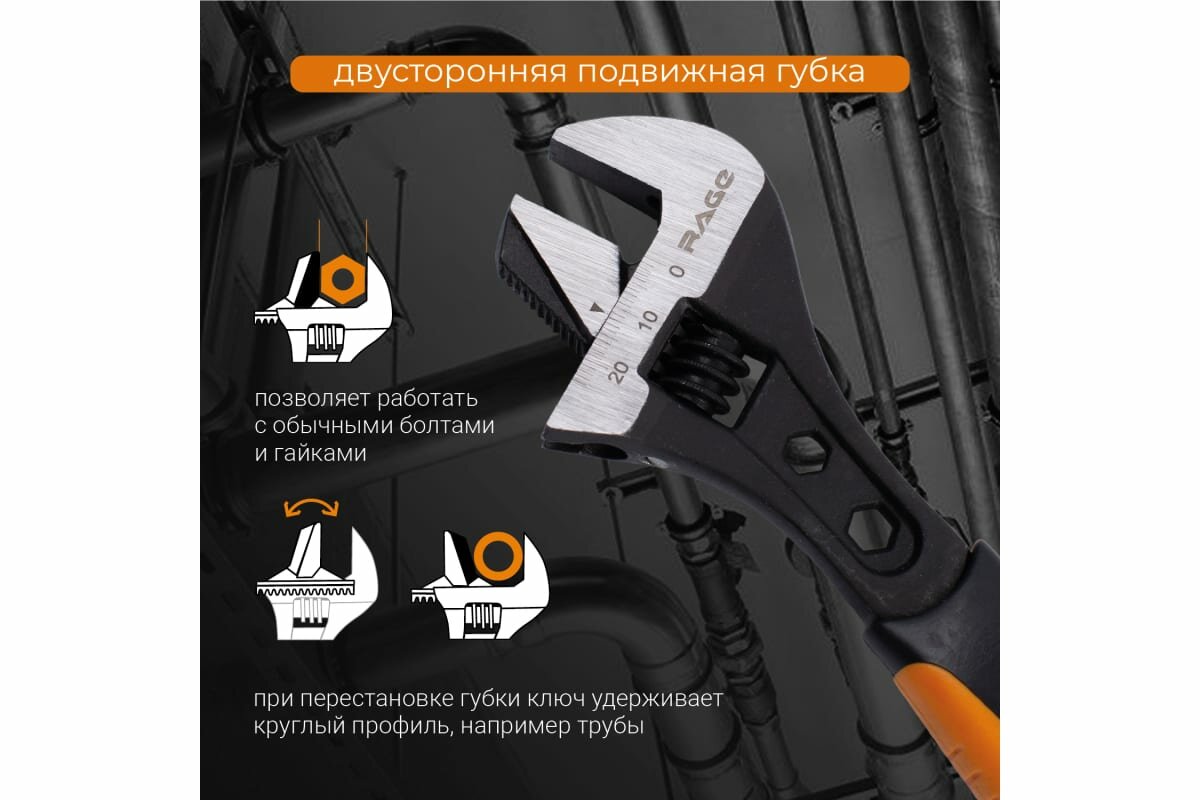 RAGE By VIRA Ключ разводной с переставной губкой 200 мм 311304 интересное: