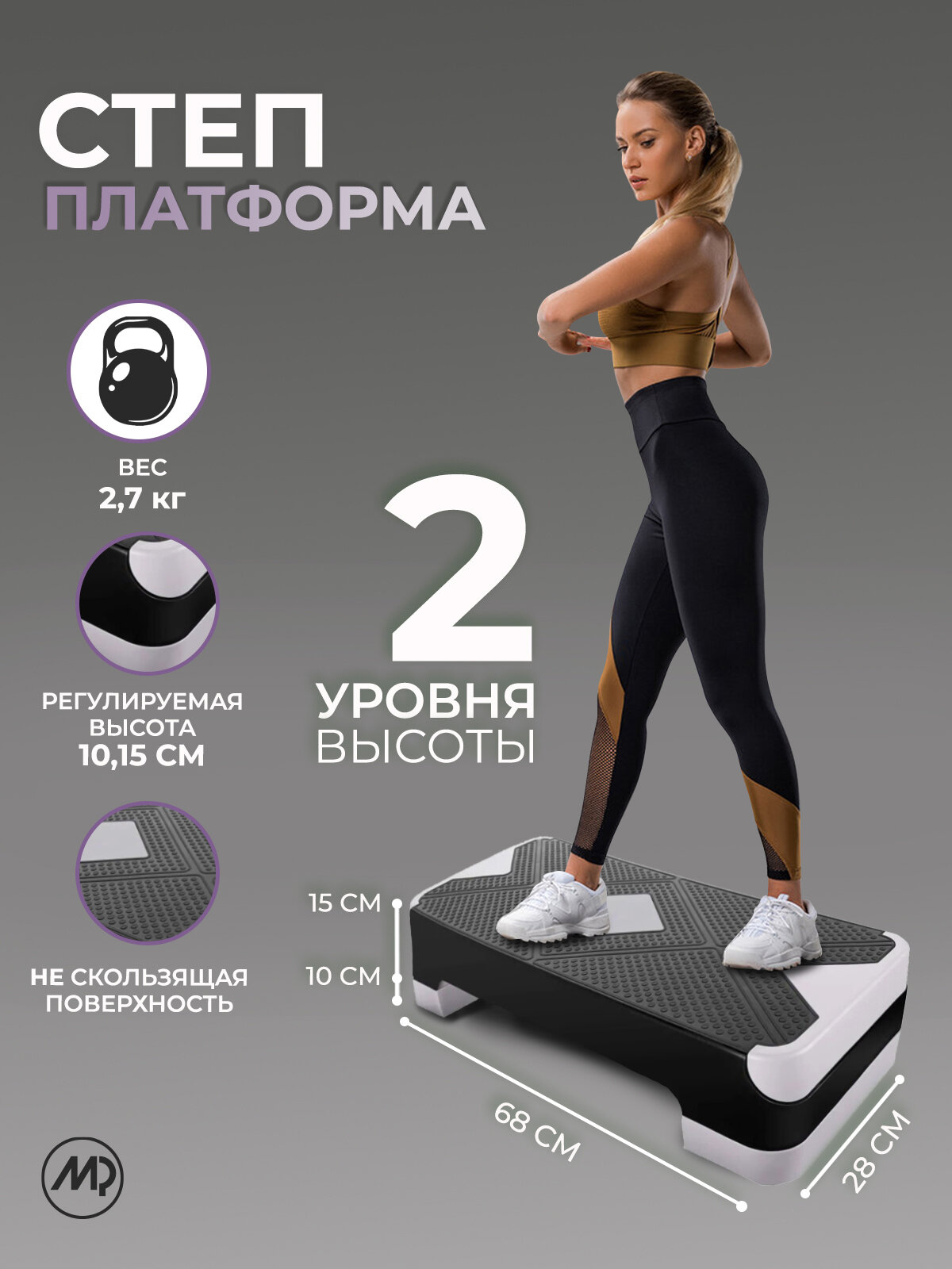 MP Степ-платформа , 2 уровня черно/ серая интересное: