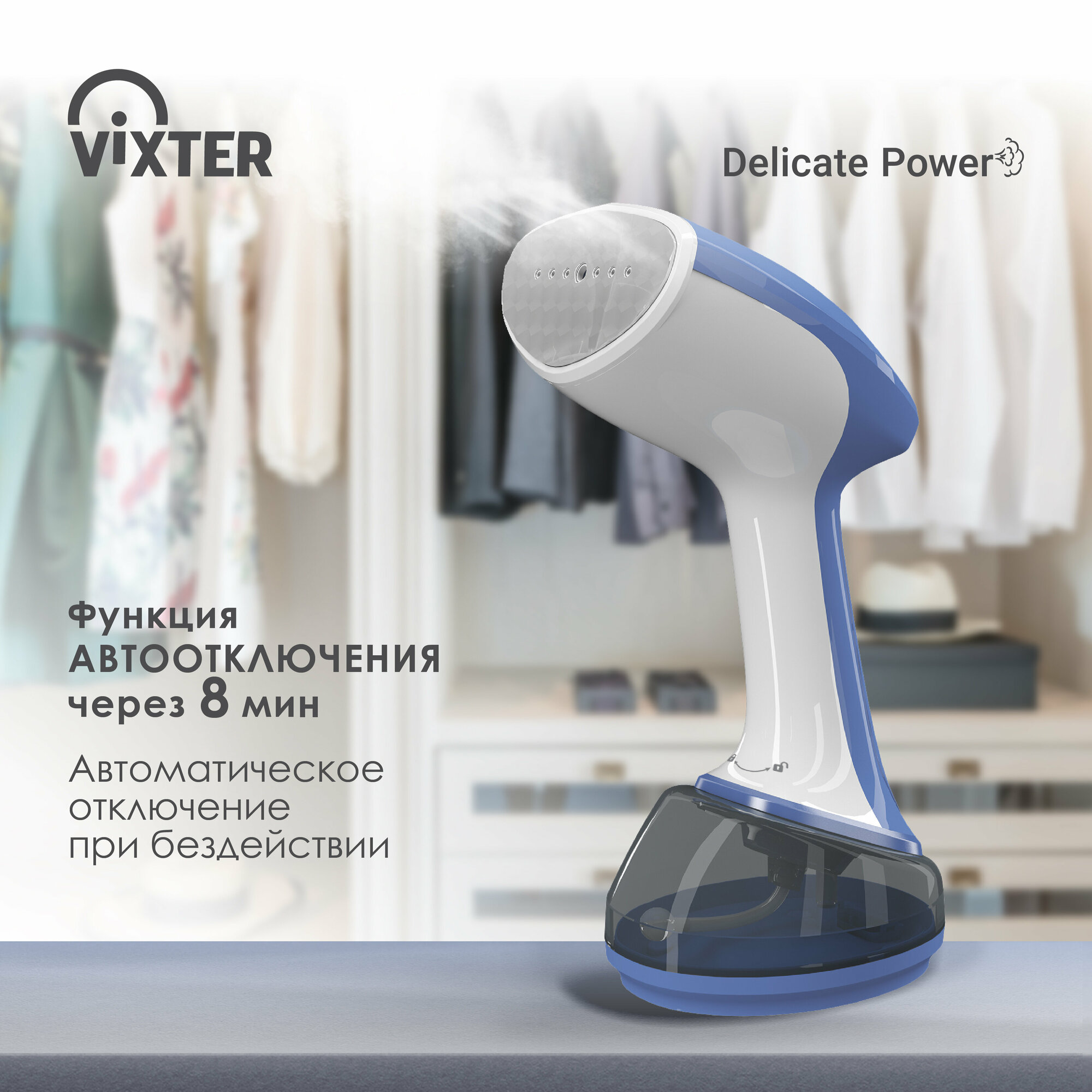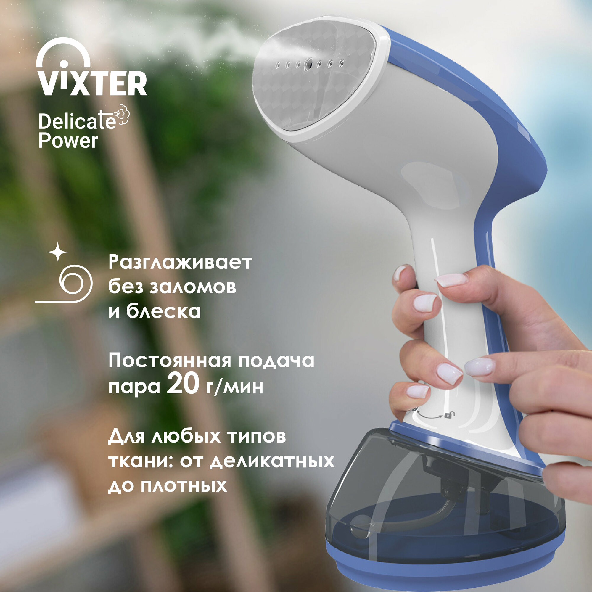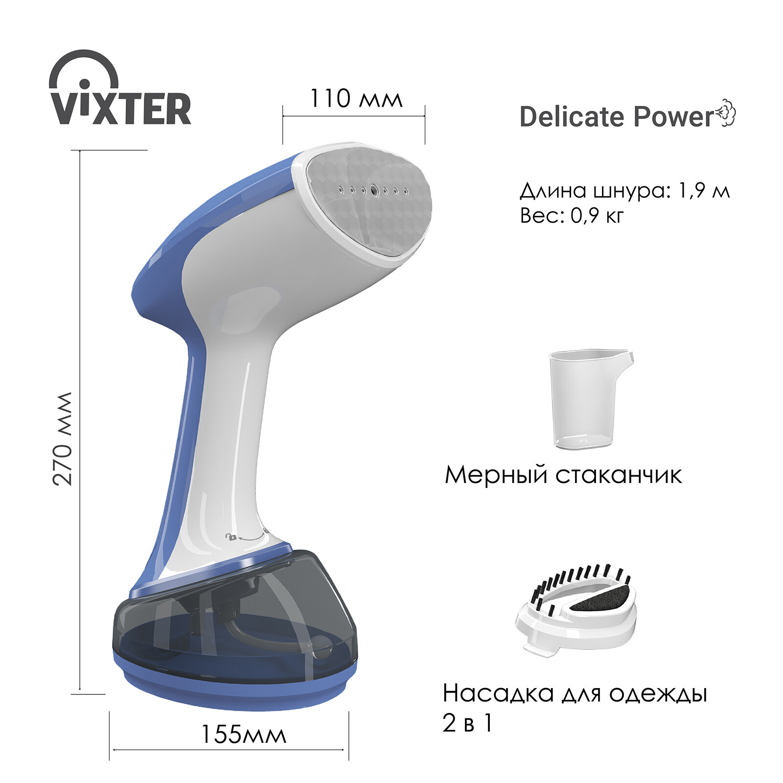 Отпариватель ручной Vixter GSH-1790, 1700 Вт, бело-голубой