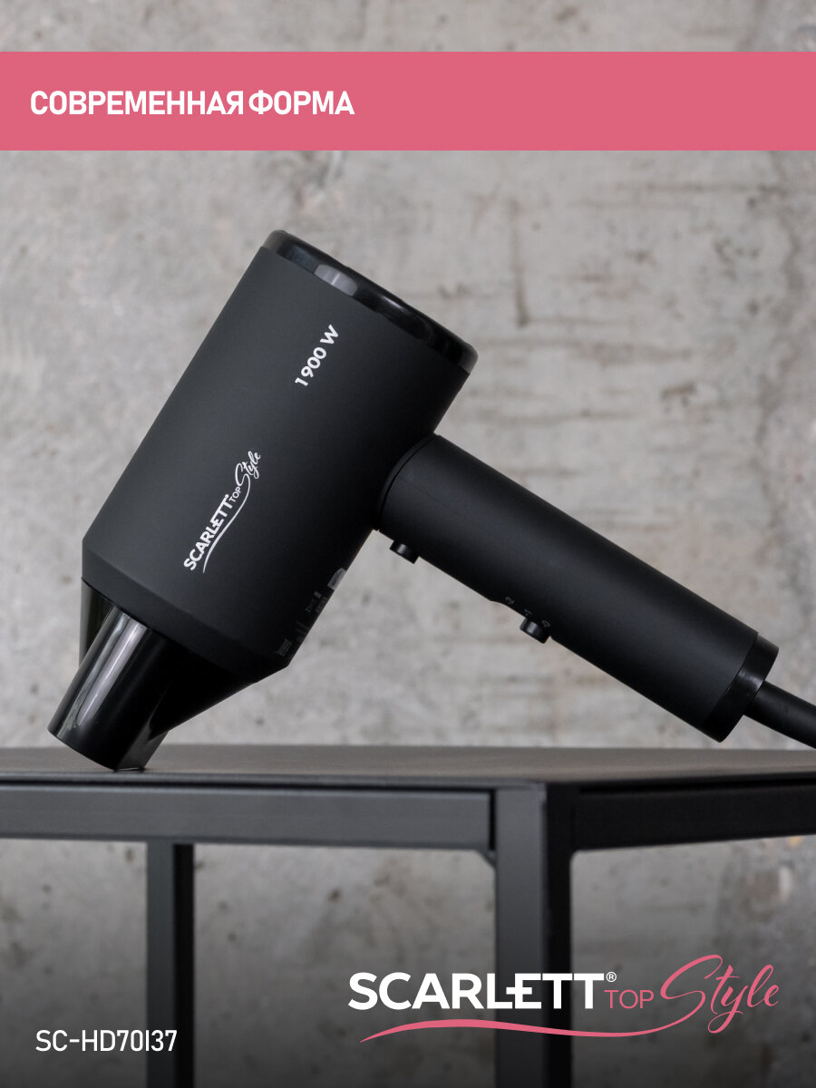 Фен Scarlett SC-HD70I37, 1900Вт, черный интересное: