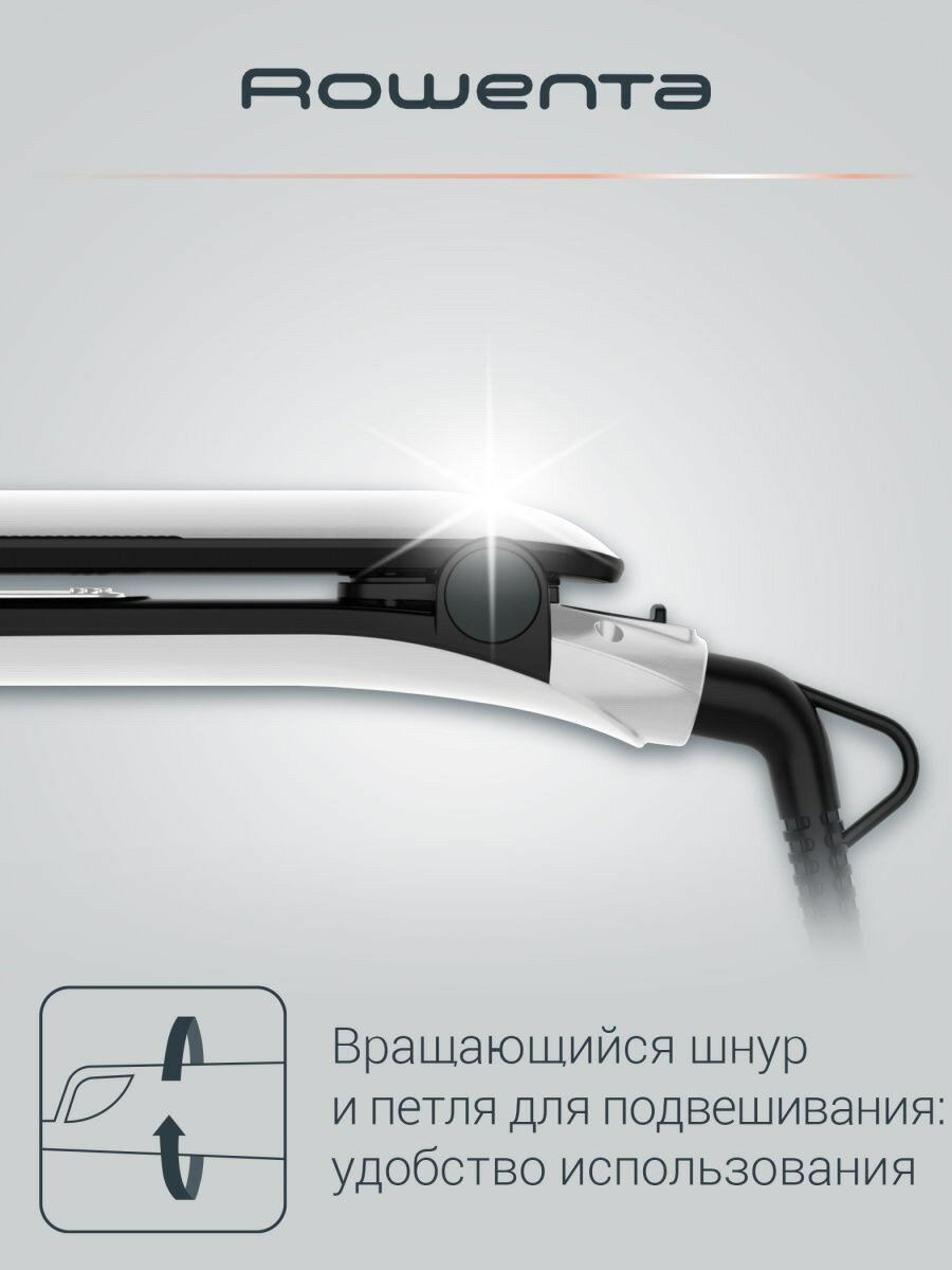 Выпрямитель Rowenta SF1628F0, 1600Вт, турмалиновый, ионизирующий, 25мм, белый, серый