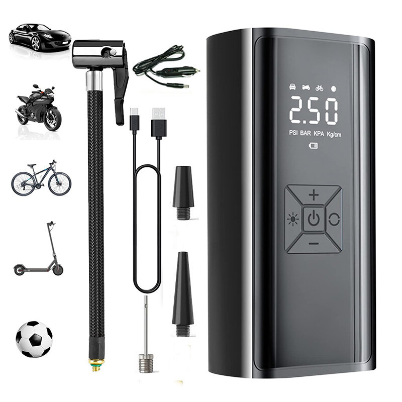 Автомобильный компрессор с встроенным аккумулятором и зарядкой USB, Насос автомобильный, черный