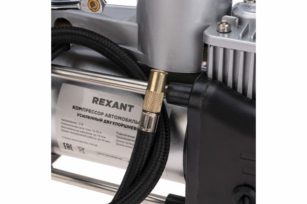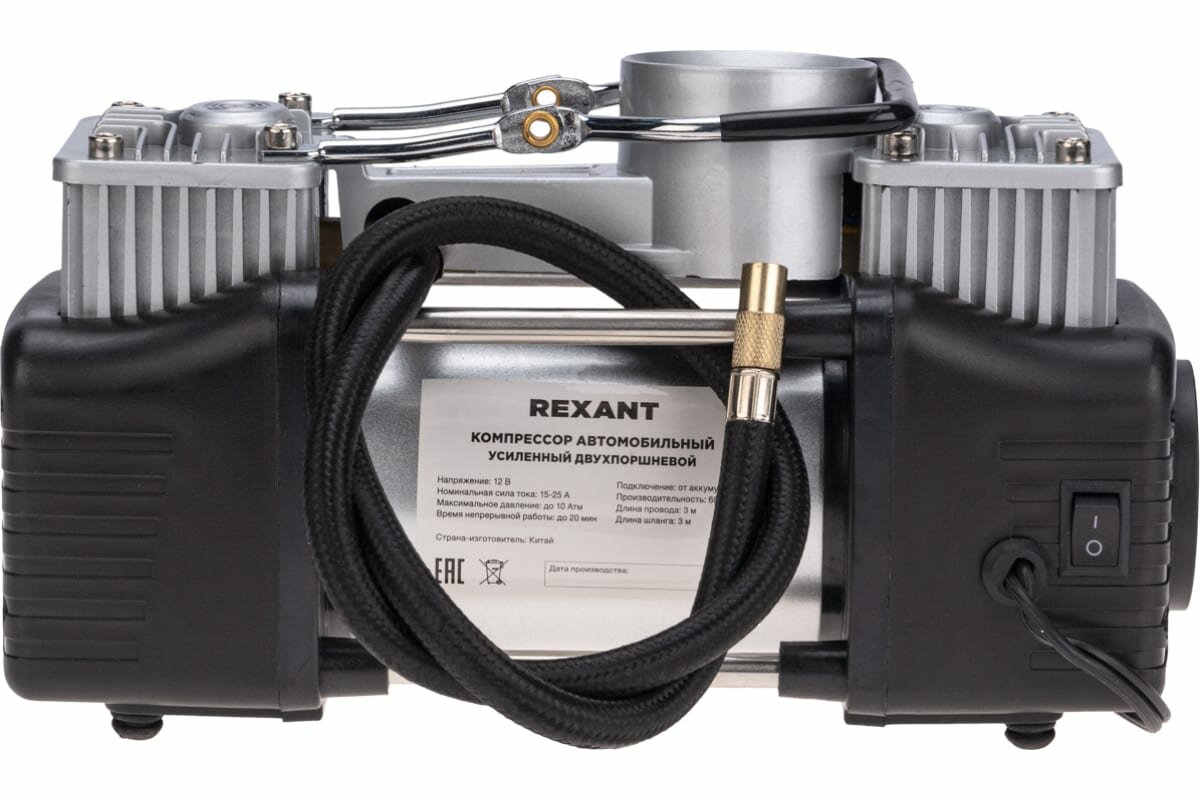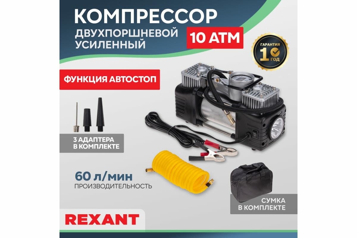 Компрессор автомобильный Rexant усиленный, двухпоршневой, 10Атм, 60л/мин