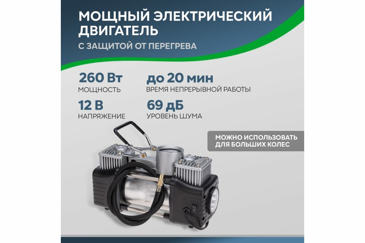 СохранитьАвтомобильный компрессор Rexant усиленный двухпоршневой, 60 л/мин, 10 Атм, со встроенным фонарем, цифровым манометром и автостопом интересное:
