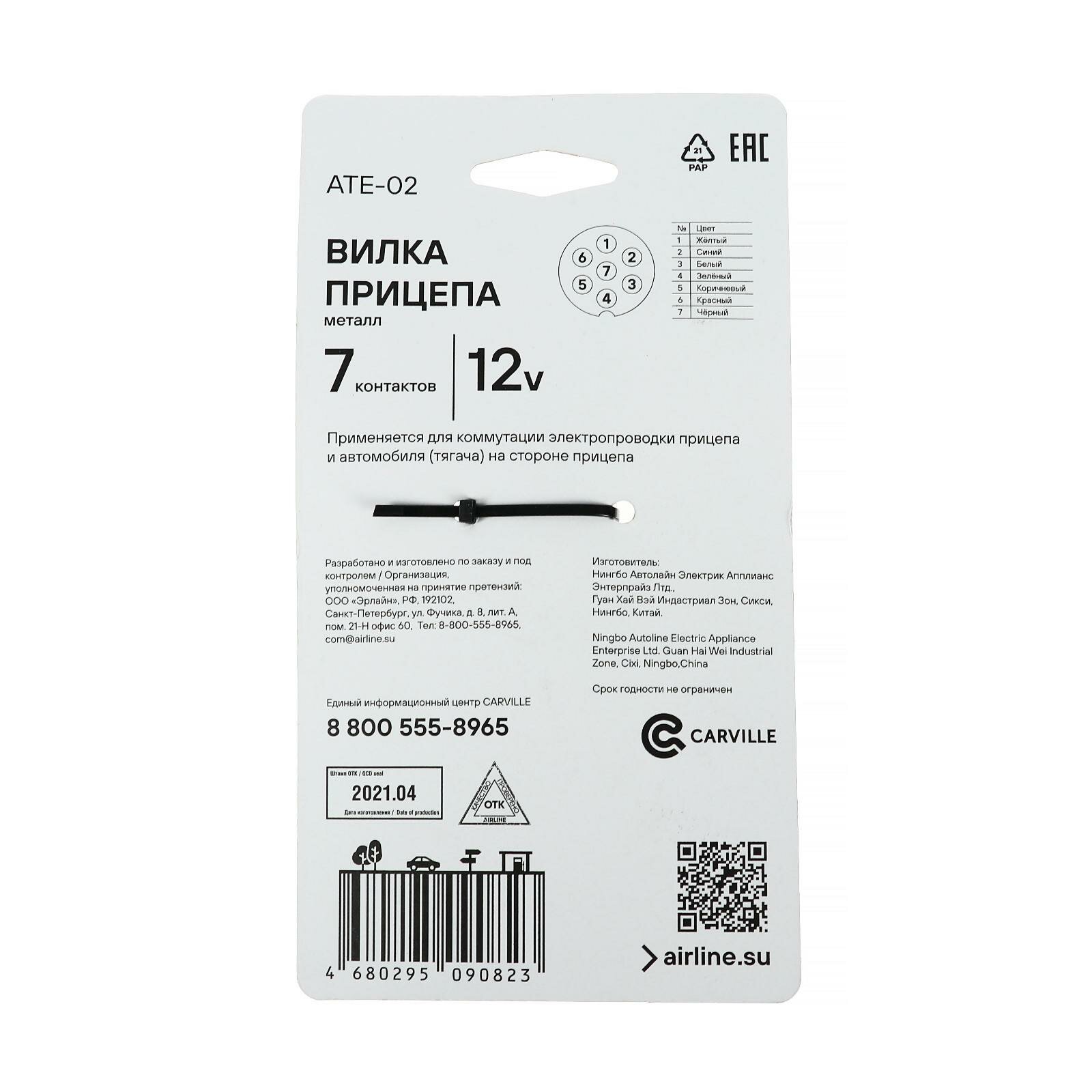 Вилка Прицепа 7 Контактов Металл Ate-02 AIRLINE арт. ATE-02