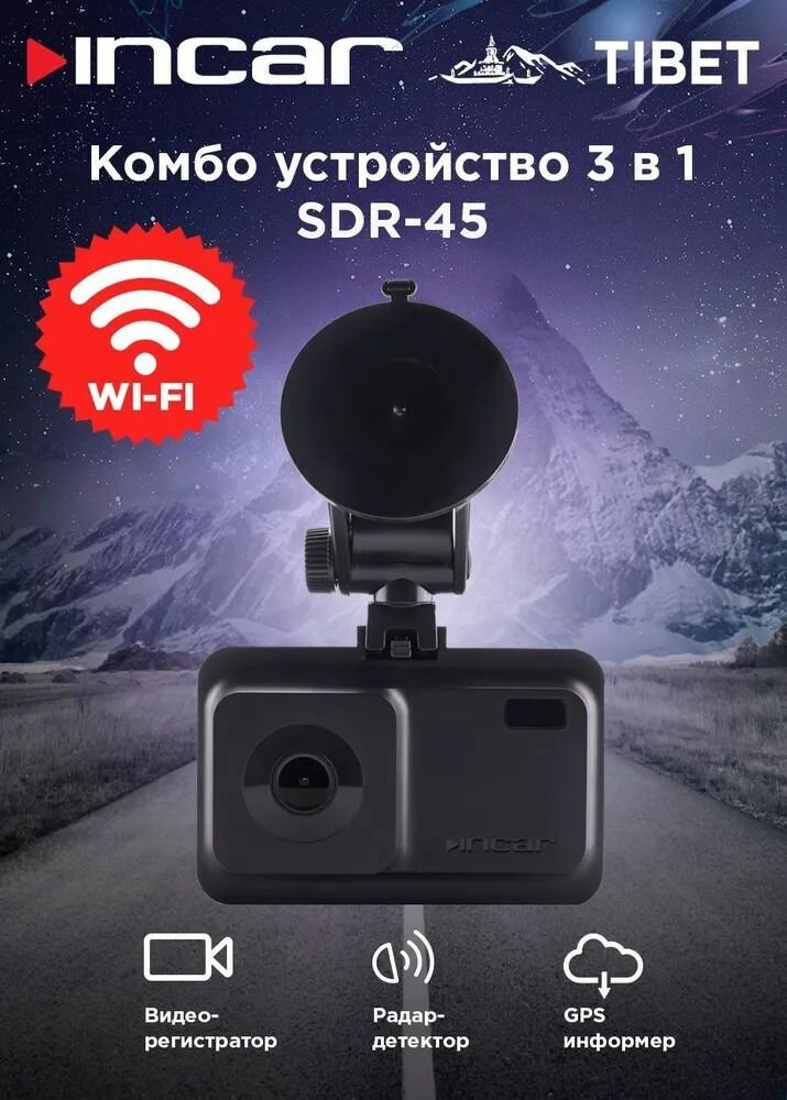 Видеорегистратор с радар-детектором Incar SDR-45 Tibet / Wi-Fi, GPS