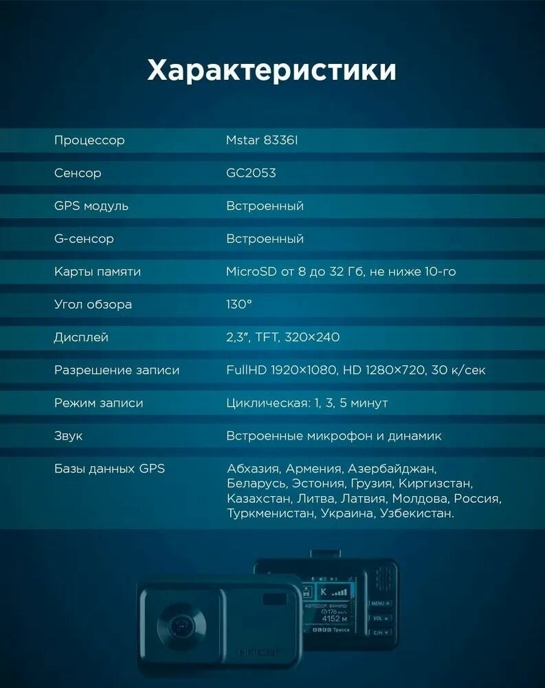 | Особенности | крепление на магните, крепление на присоске, голосовые подсказки, радар-детектор |