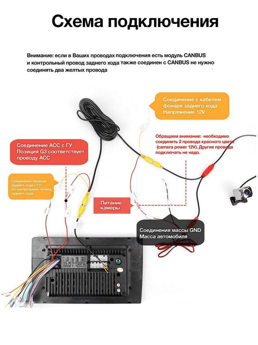 | Подробная комплектация | Комплектация: камера заднего вида - 1 шт, AV-провод 5м - 1шт, провод питания - 1 шт, саморез - 2 шт, 2х сторонний скотч - 1 шт |
