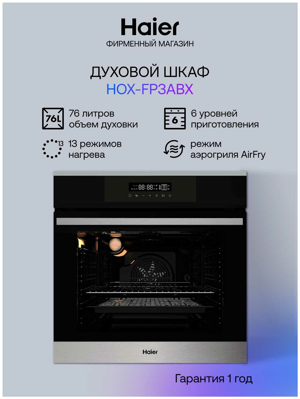 Встраиапмый духовой с конвекцией и сенсорным управлением шкаф Haier HOX-FP3AGB