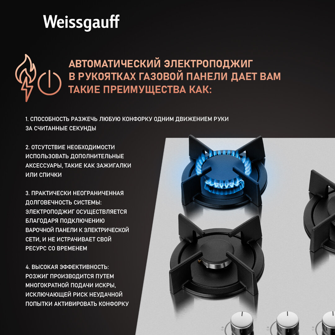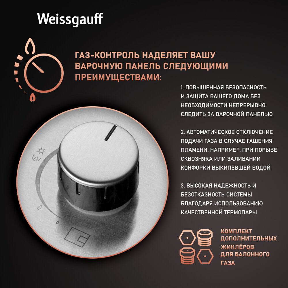 Варочная панель Weissgauff HGG 430 XR экспресс-конфорка, 3 года гарантии, Рукоятки Hi-Tech, газ-контроль интересное: