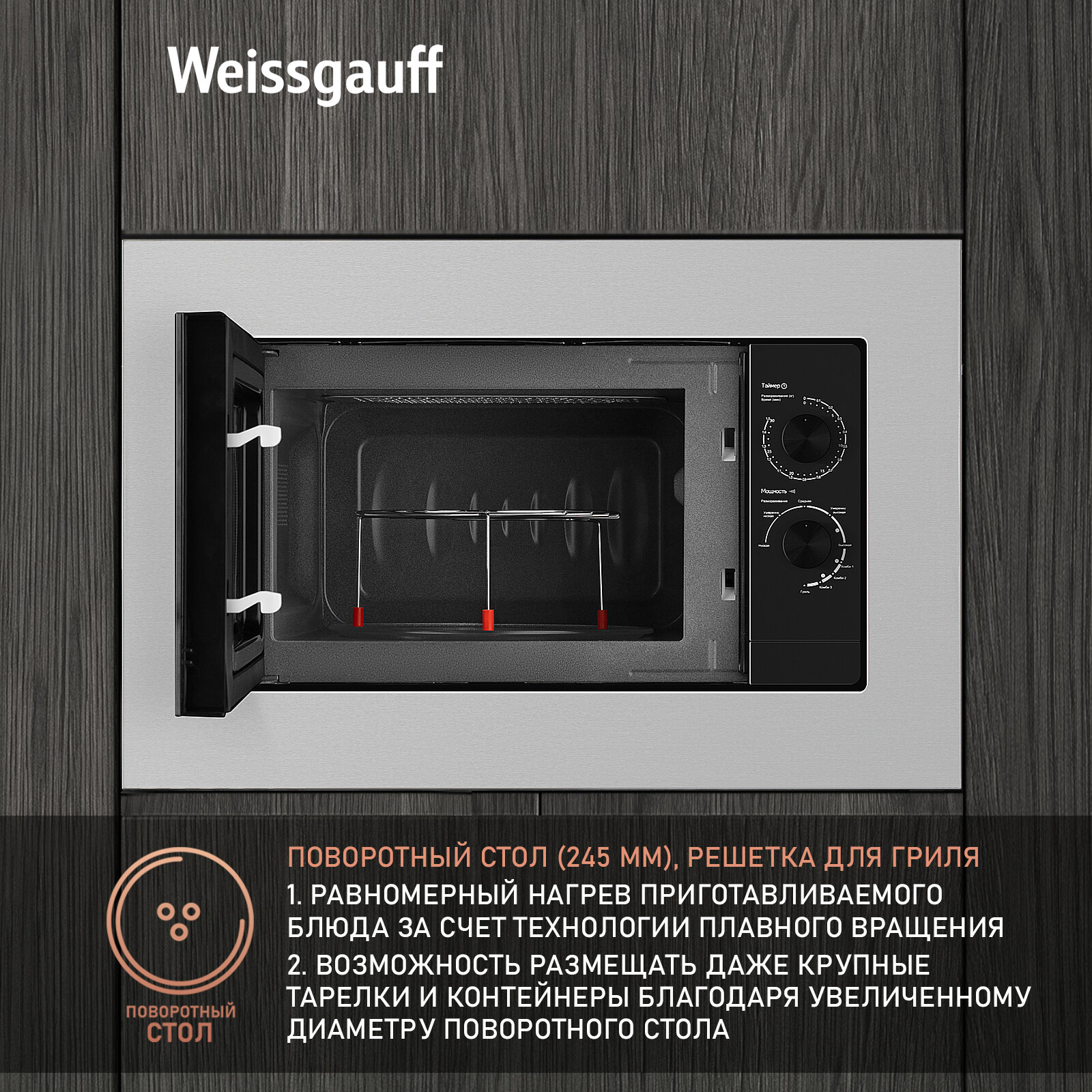 Микроволновая печь встраиваемая HMT-2015 GRILL WEISSGAUFF интересное:
