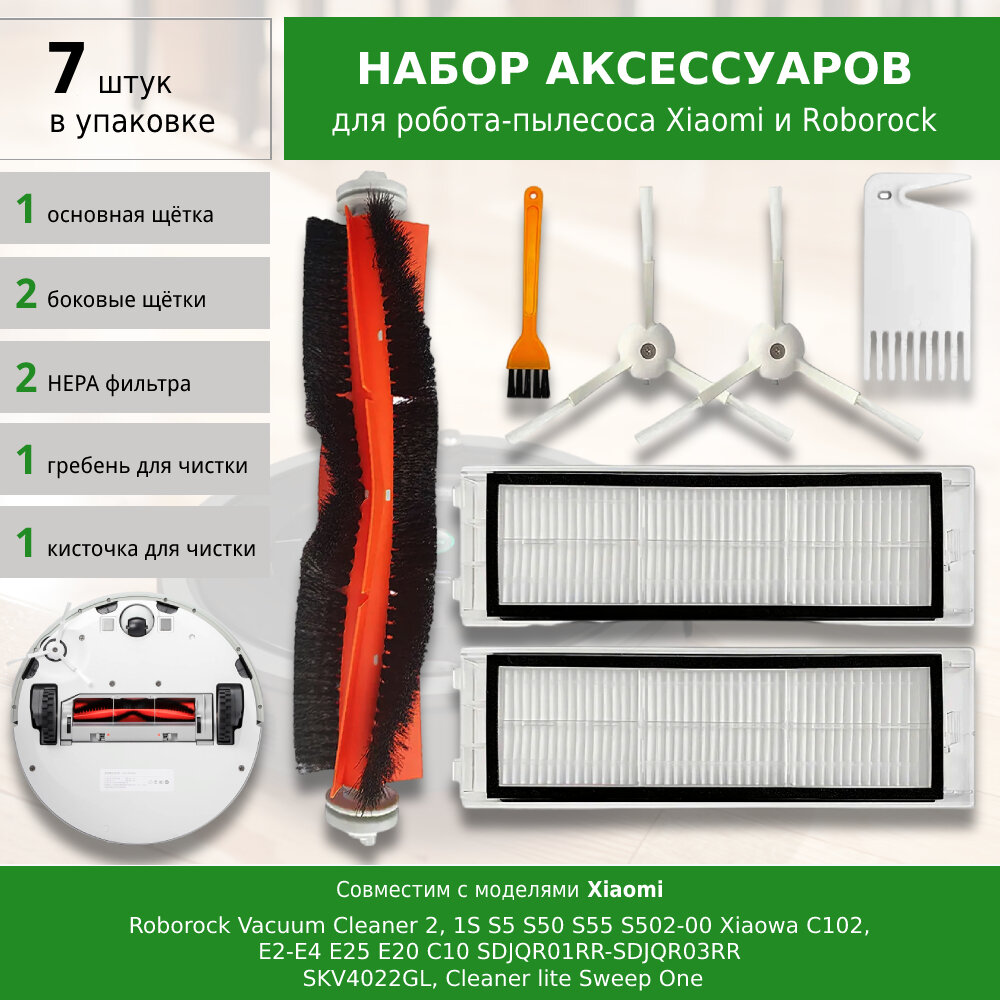 Комплект фильтров и щеток для робот-пылесоса Xiaomi Roborock Vacuum Cleaner 2, 1S, S5 S50 S55 S502-00 Xiaowa C102, E2-E4, E25 E20 C10 SDJQR01RR-SDJQR0 интересное: