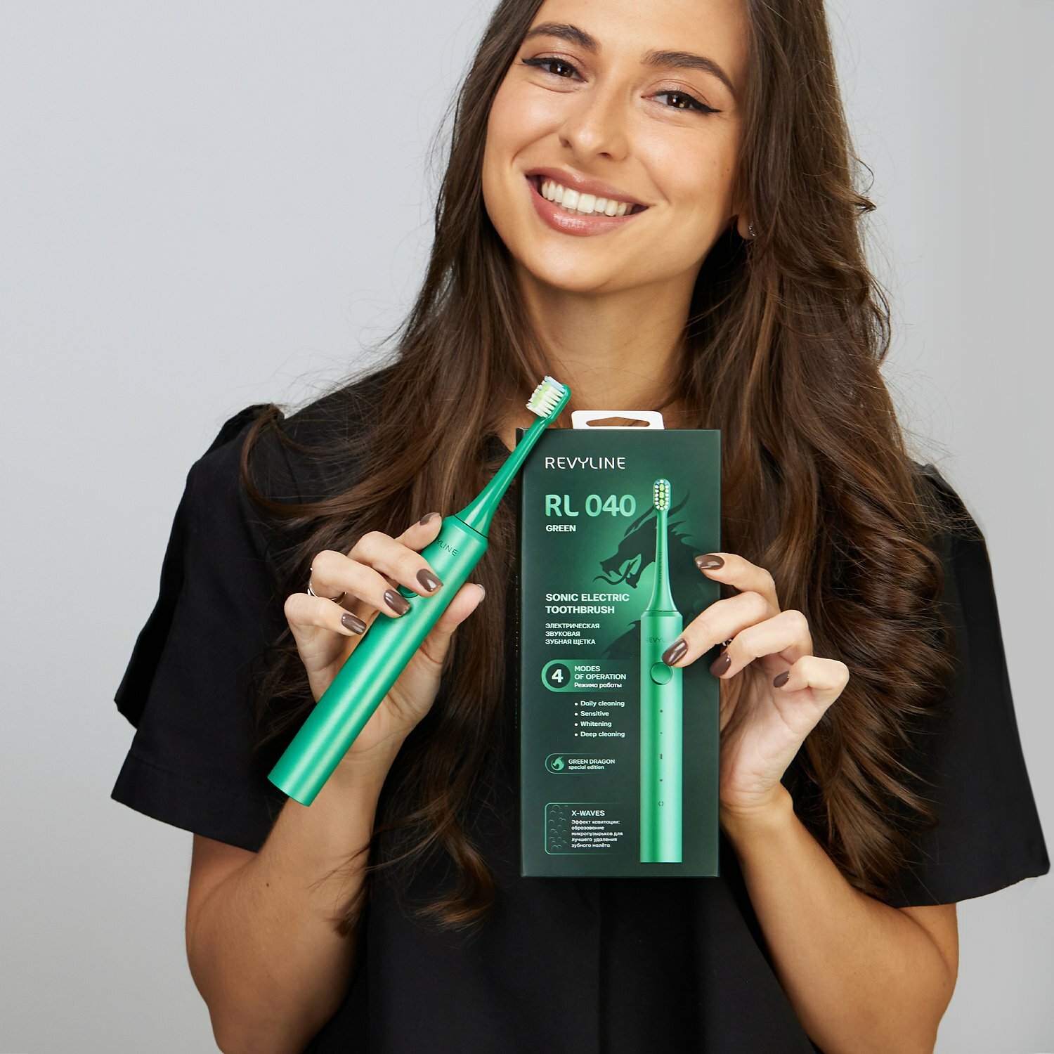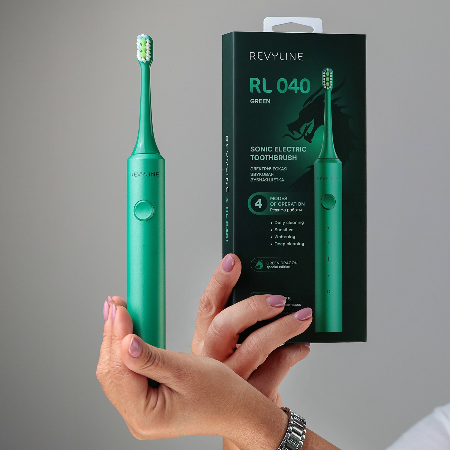 Купить Сменные насадки для электрической звуковой зубной щетки Revyline RL 040 Green Dragon, зеленые, 2 шт.