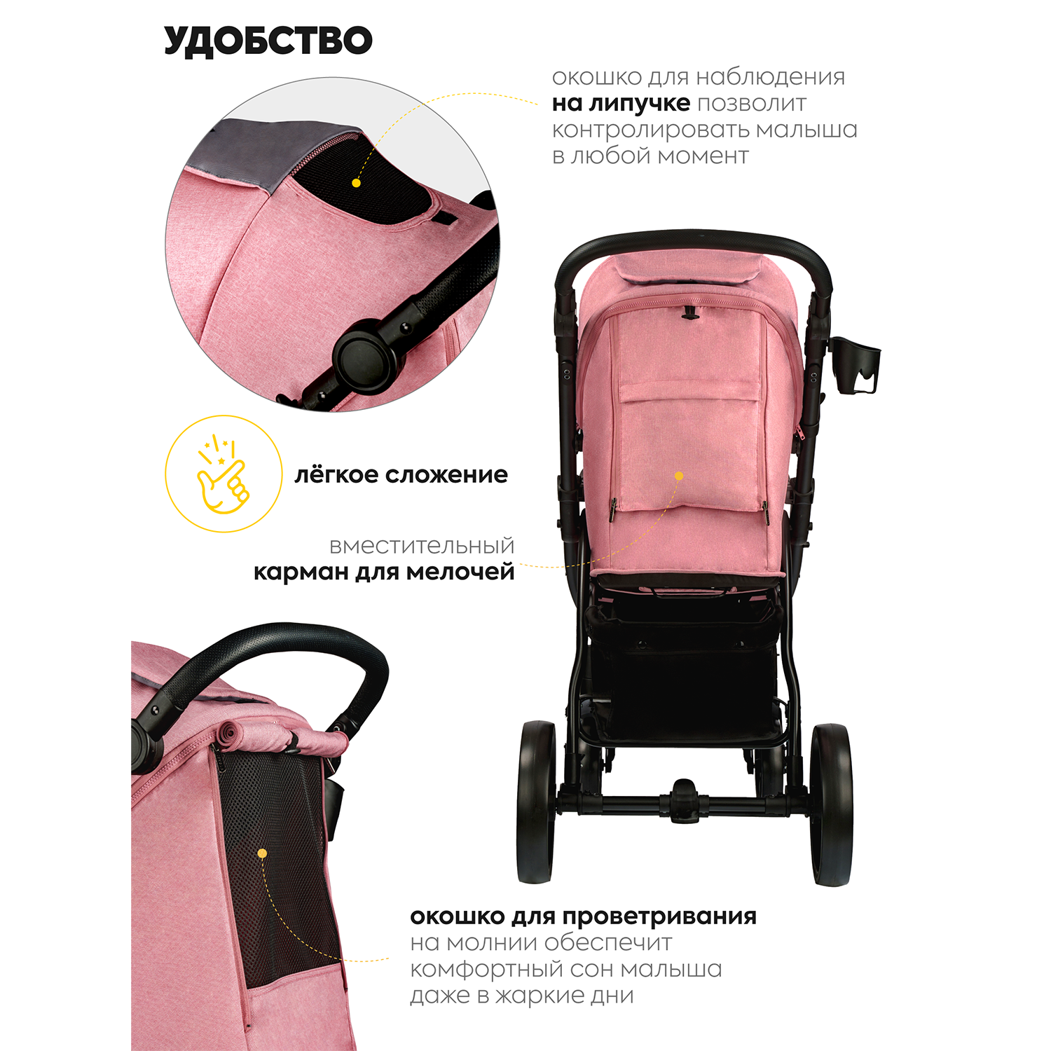 СохранитьКоляска прогулочная Jovola Extra всесезонная, розовый интересное: