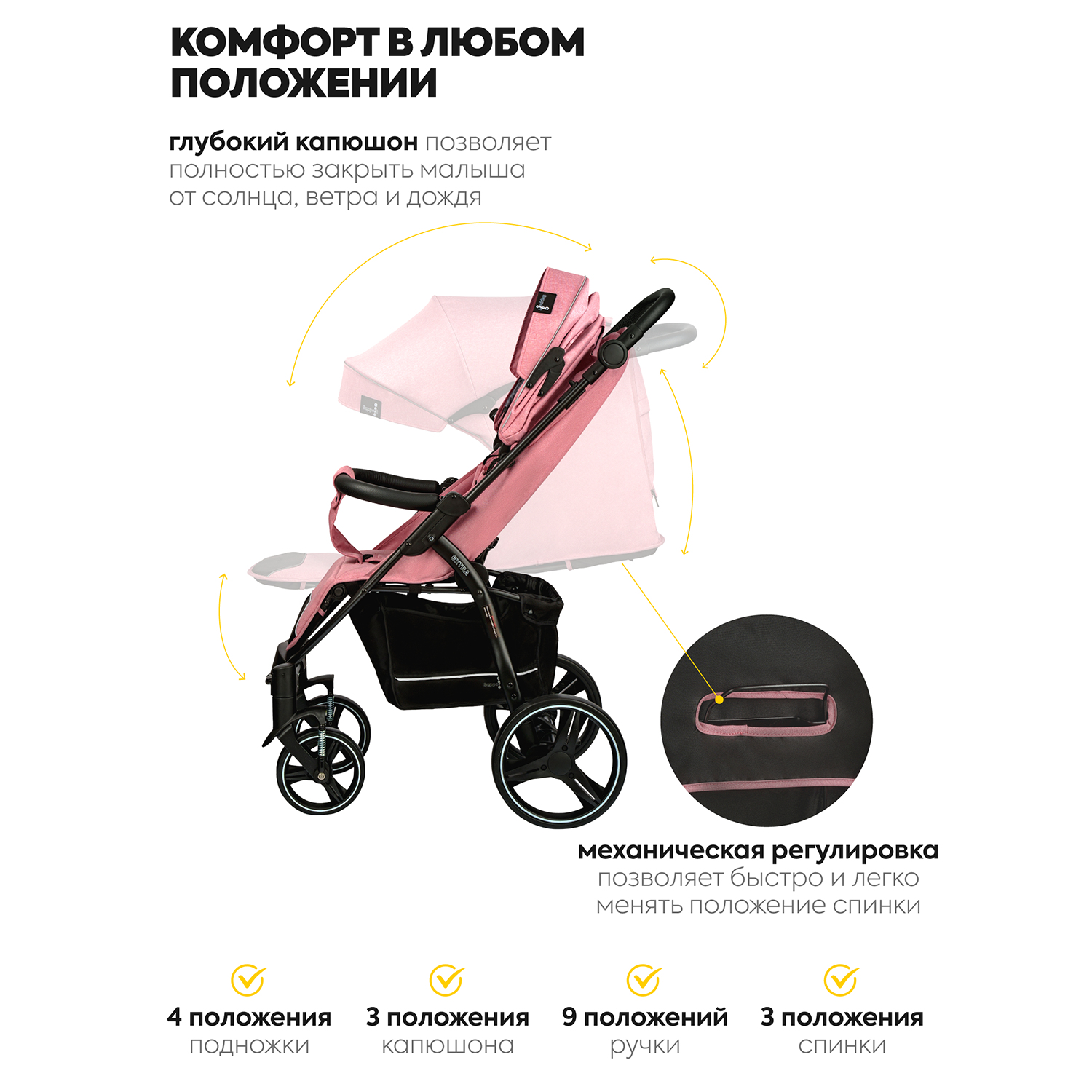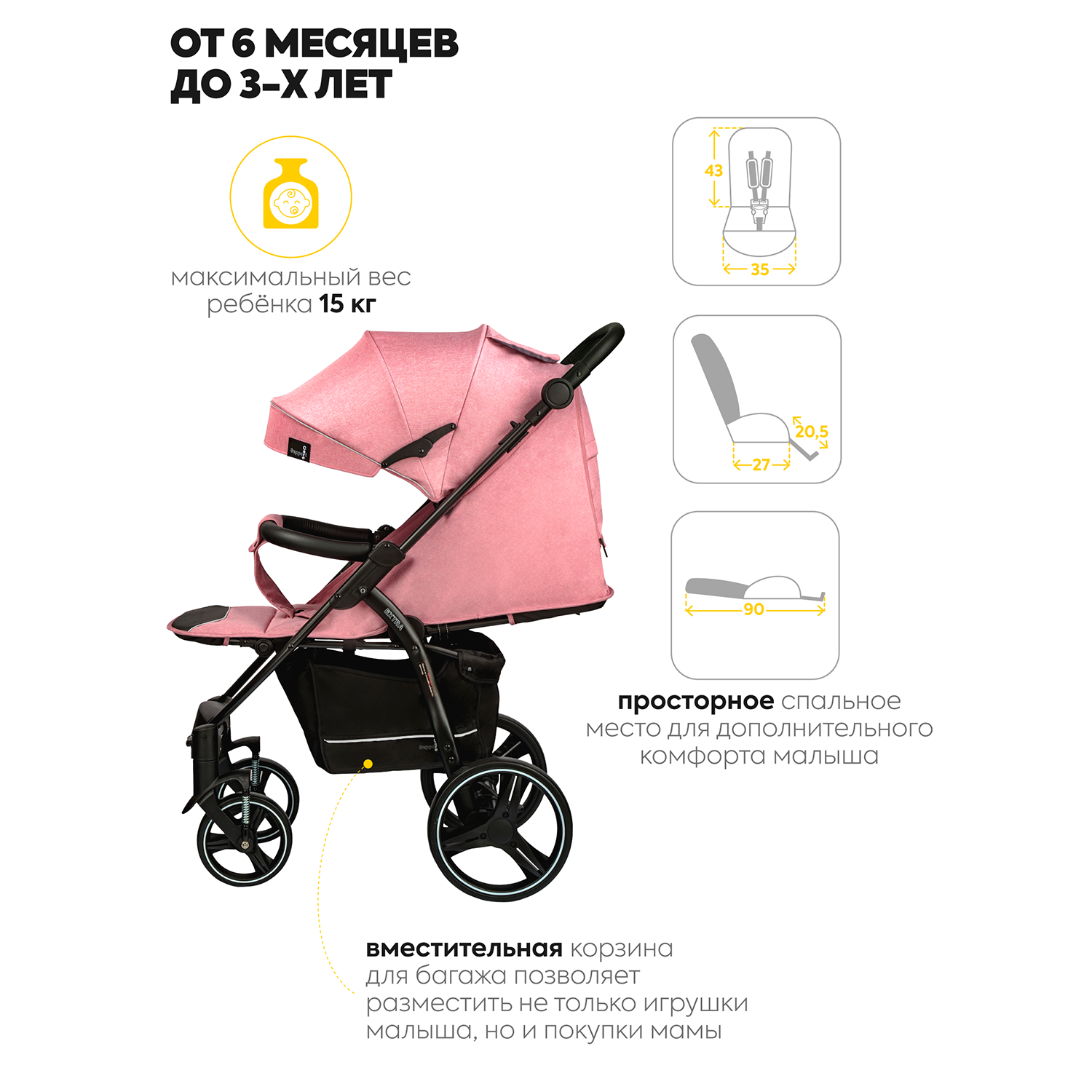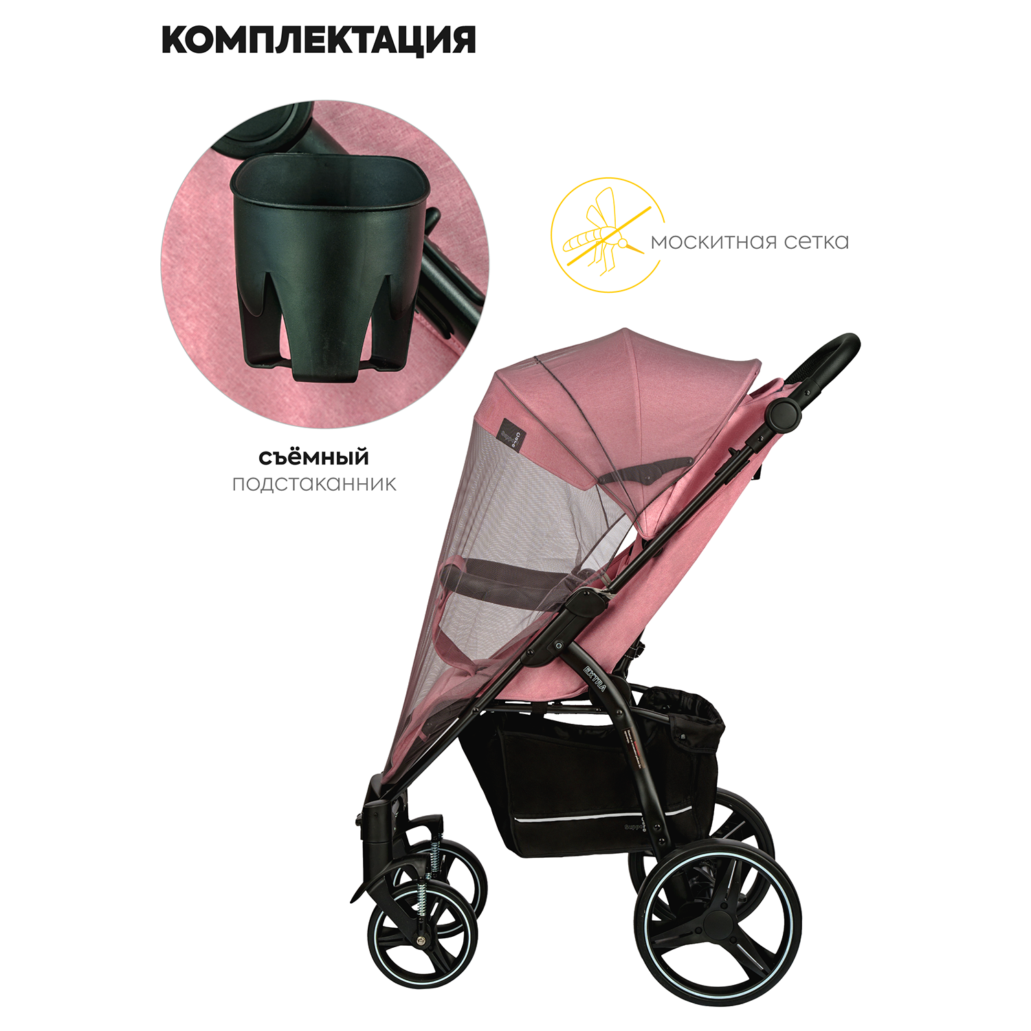 | Комплектация | антимоскитная сетка / корзина для покупок / накидка на ножки / Съемный бампер |
