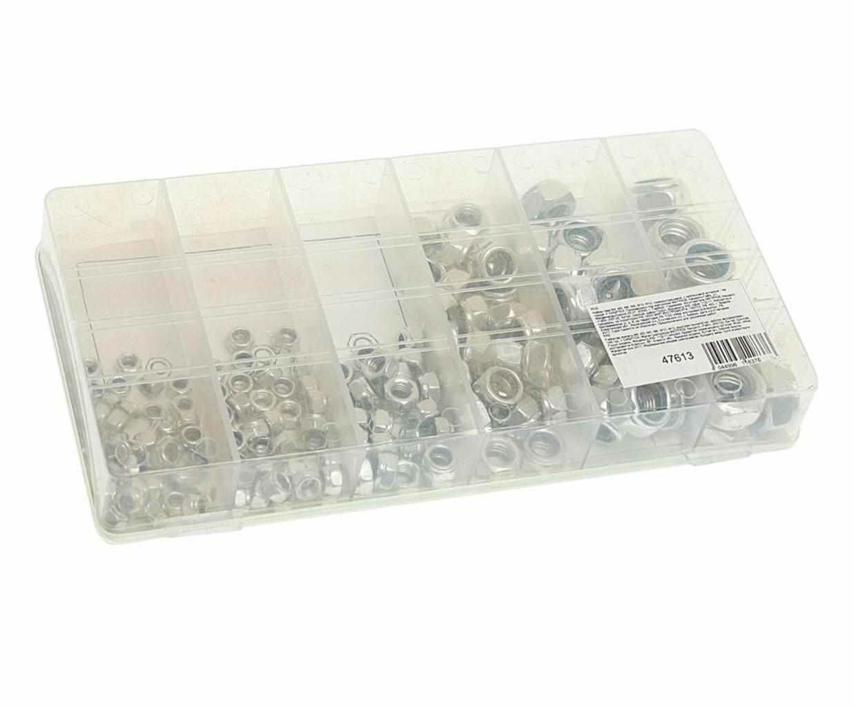 Купить Набор гаек М4, М5, М6, М8, М10, М12, самоконтрящиеся, с нейлоновой вставкой, 146 предметов СИБРТЕХ 47613