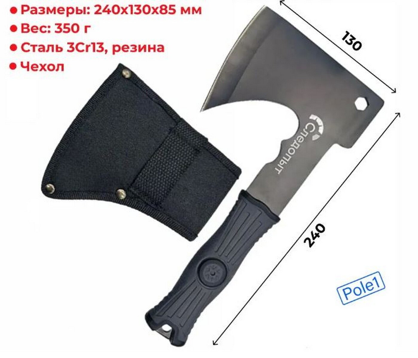 Ниже Вы можете прочитать отзывы на Топор туристический "следопыт" 240*130*85 мм, 350 гр., черный, в чехле, ознакомится с подробными характеристиками, посмотреть интересные обзоры и фотографии на Топор туристический "следопыт" 240*130*85 мм, 350 гр., черный, в чехле.