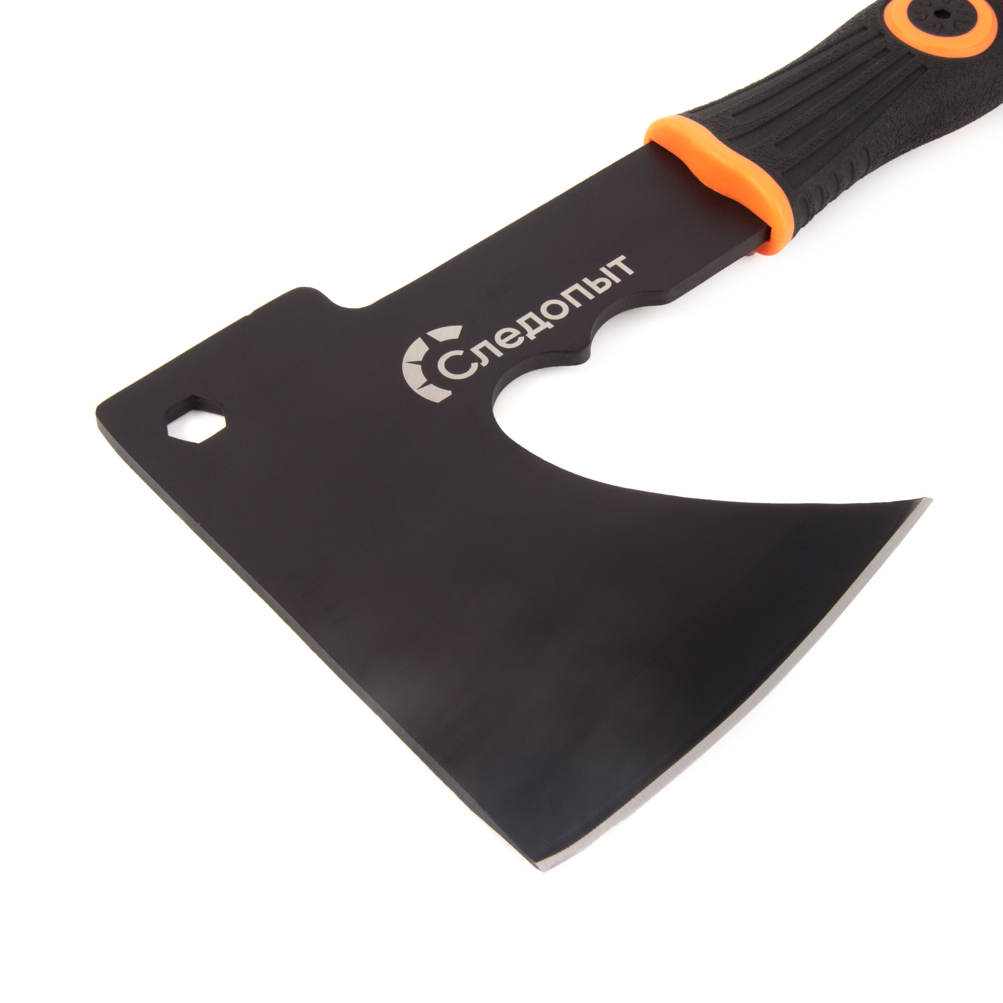 Топор туристический "следопыт" 240*130*85 мм, 350 гр, черный c оранжев. вставками, в чехле