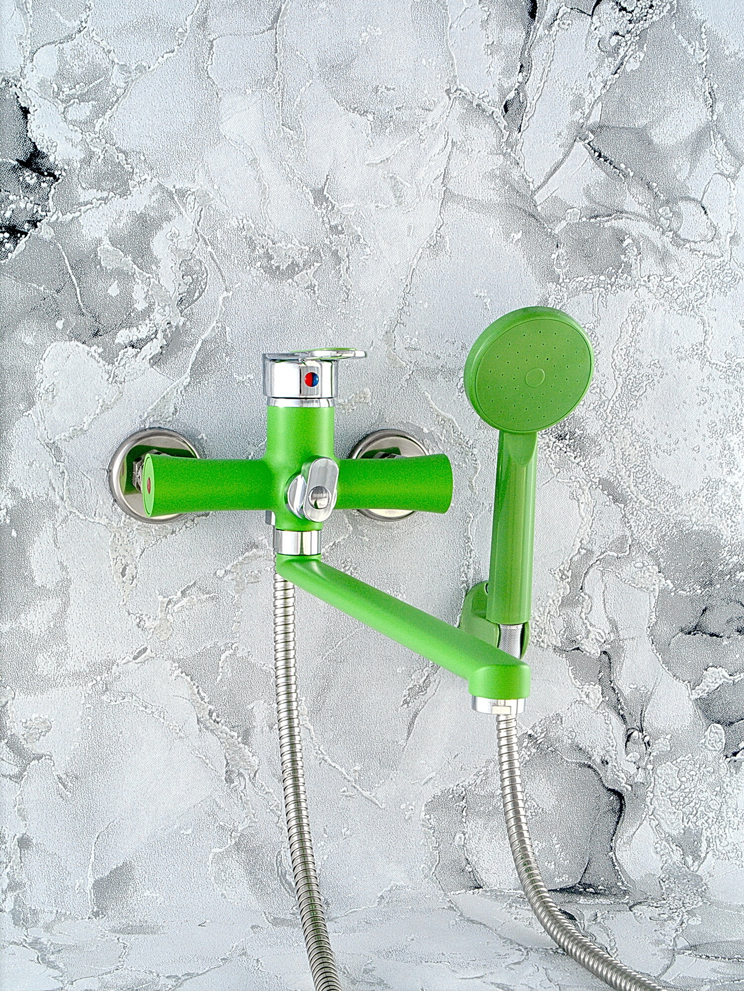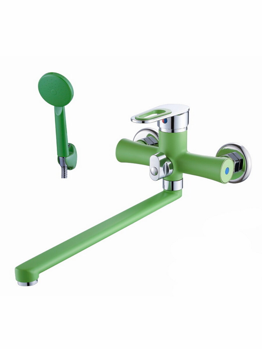 Купить Смеситель Эверест В22-274Е для ванны / душа / раковины с длинным (35 см) поворотным изливом, хромированный, Зеленый