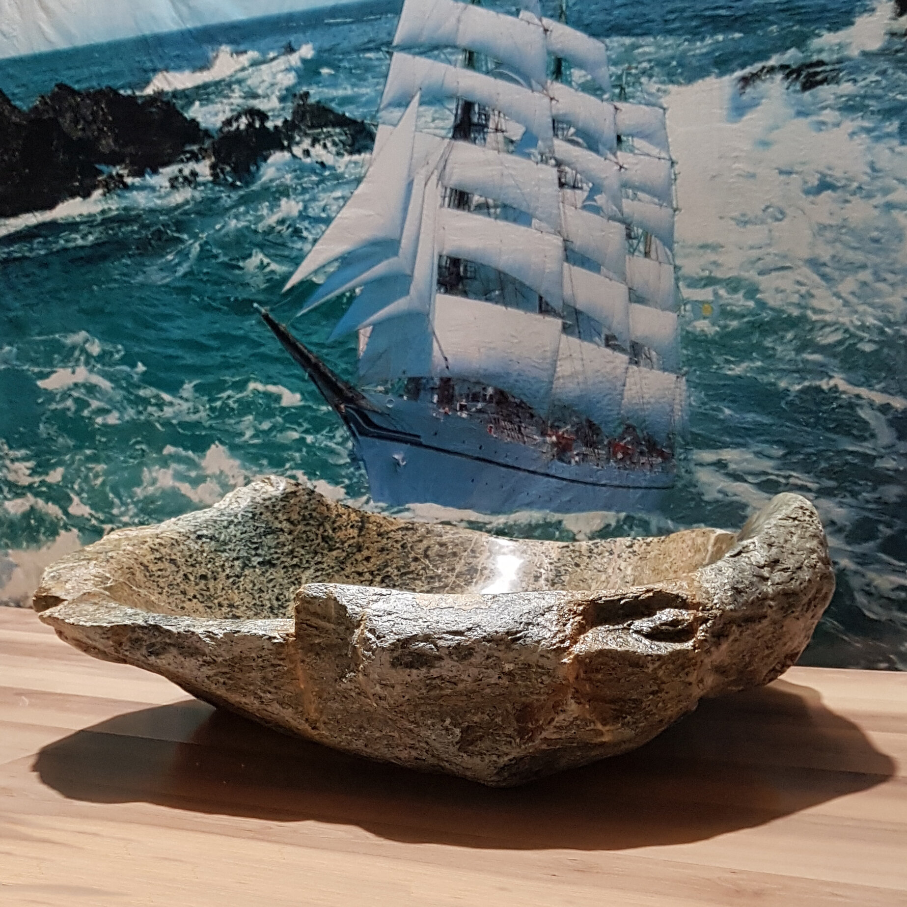 Раковина накладная на столешницу для ванной мойка каменная из натурального /речного/горного камня Кавказа 71х50х20 см