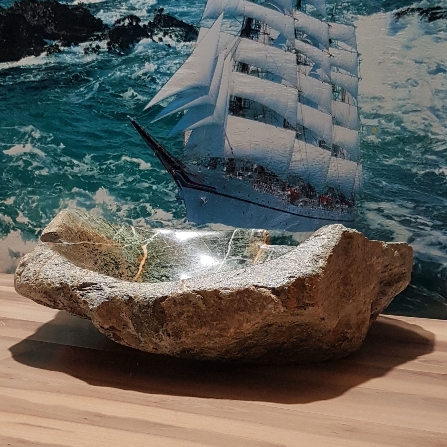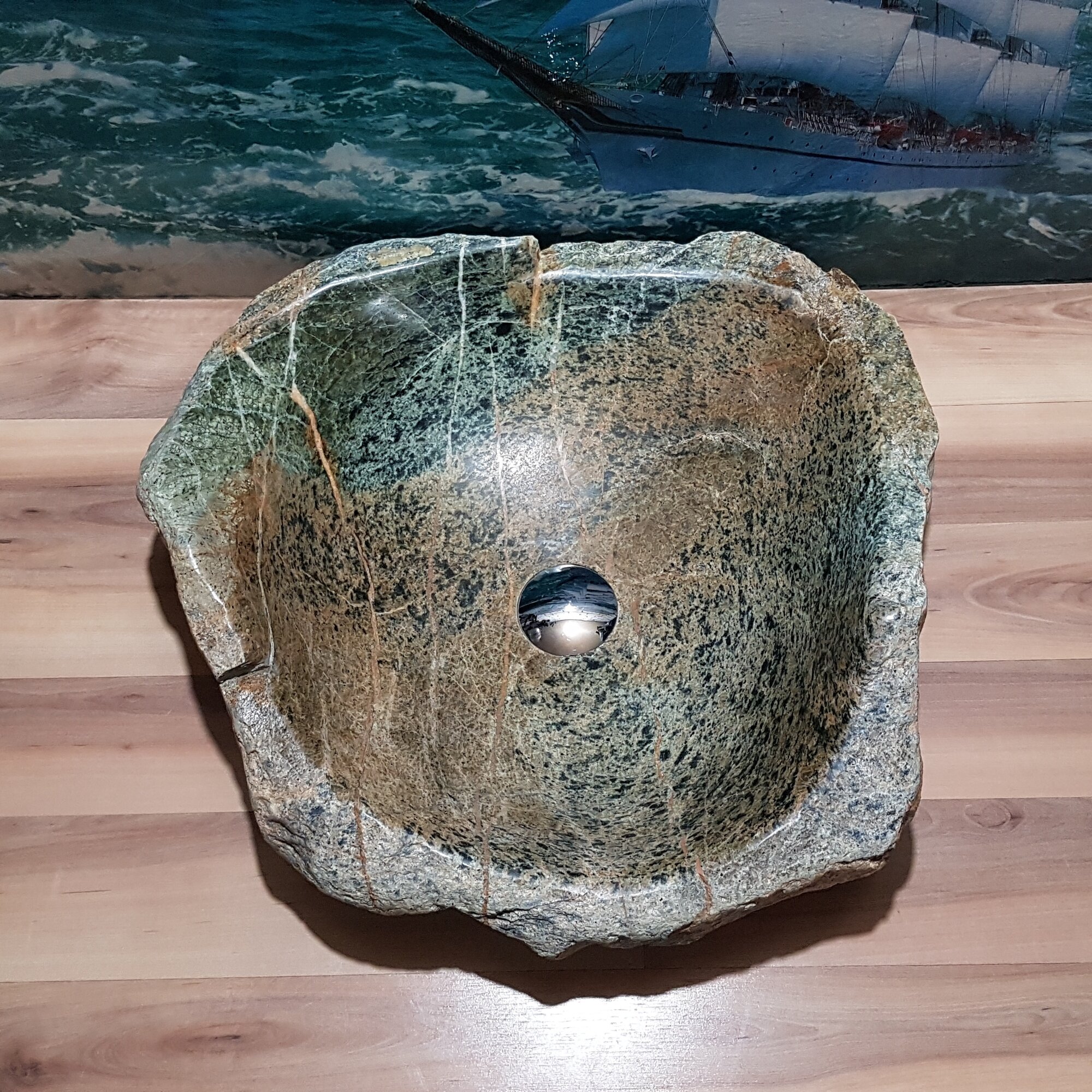 СохранитьРаковина накладная на столешницу для ванной мойка каменная из натурального /речного/горного камня Кавказа 48х47х13 см интересное: