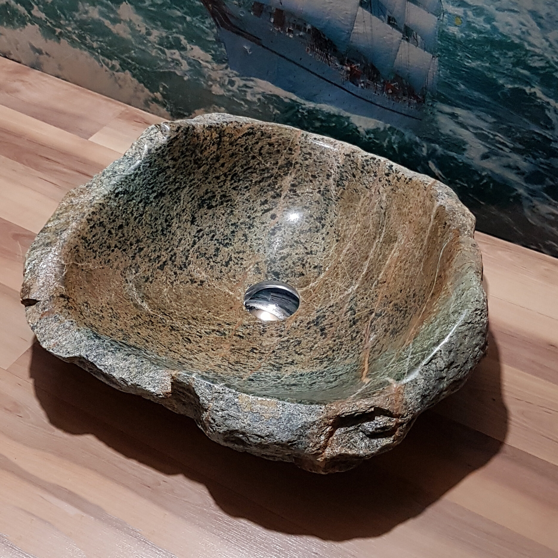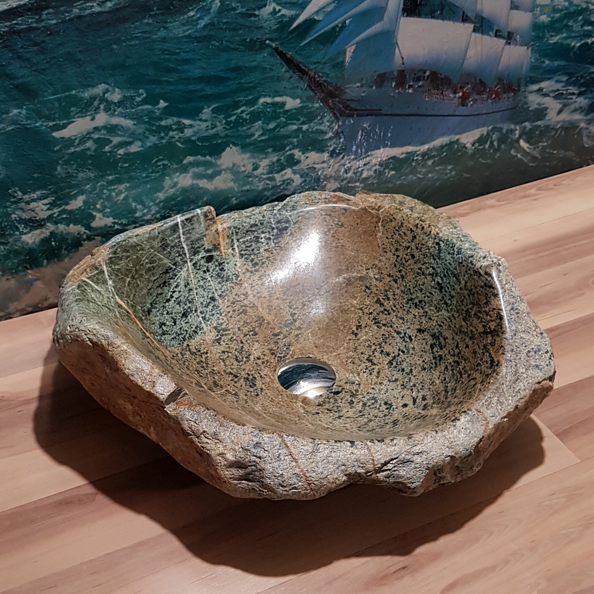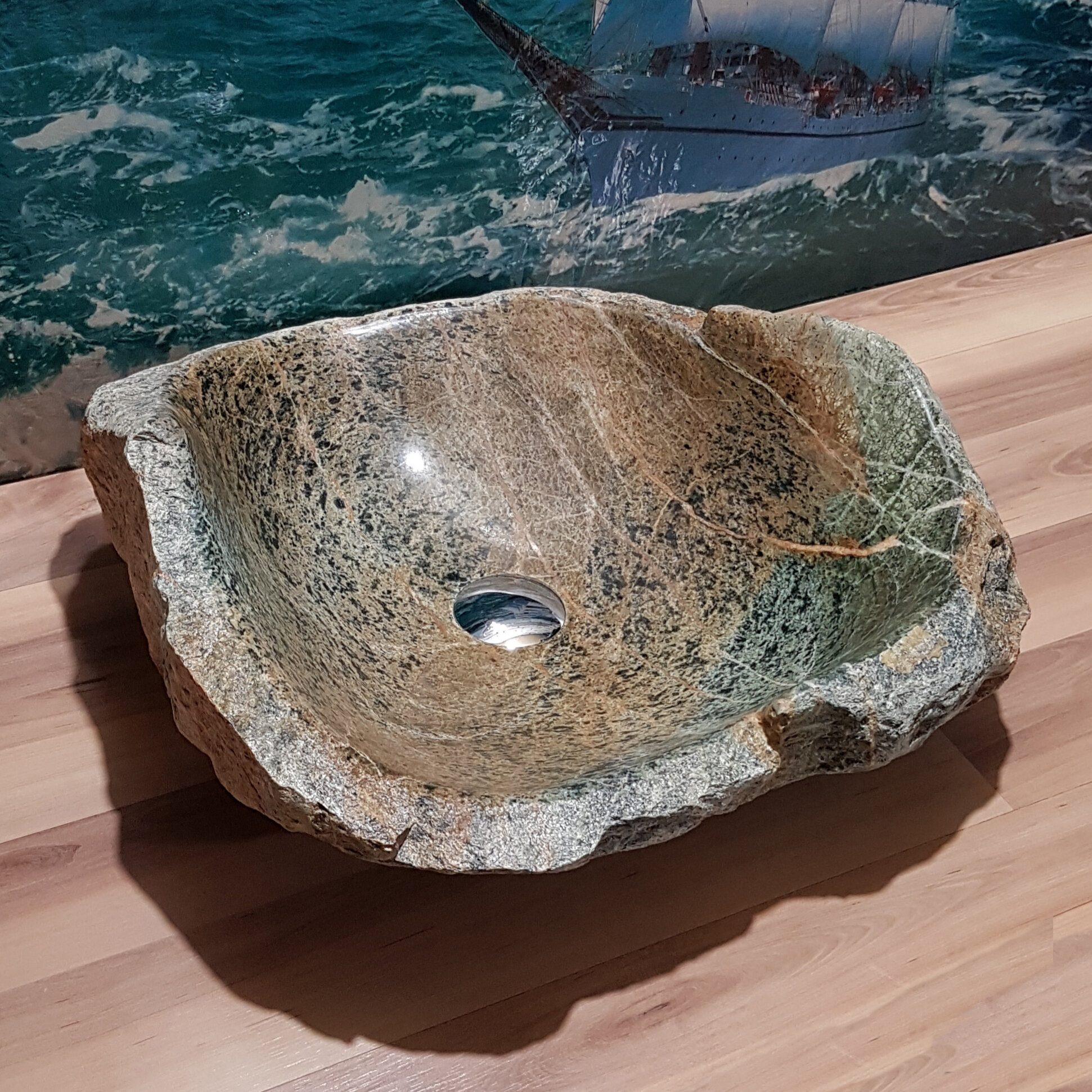 Раковина накладная на столешницу для ванной мойка каменная из натурального /речного/ горного камня Кавказа/45х31х11см