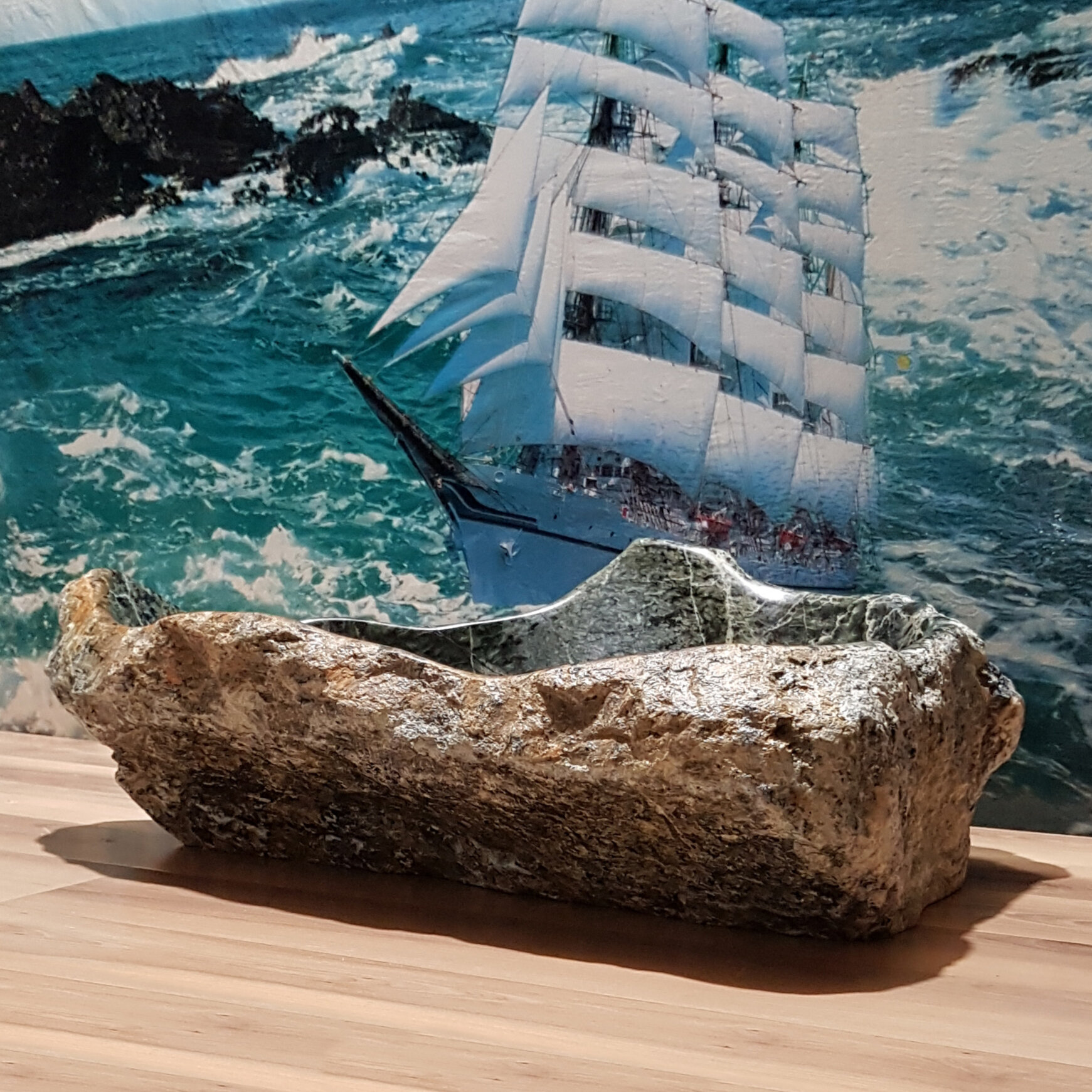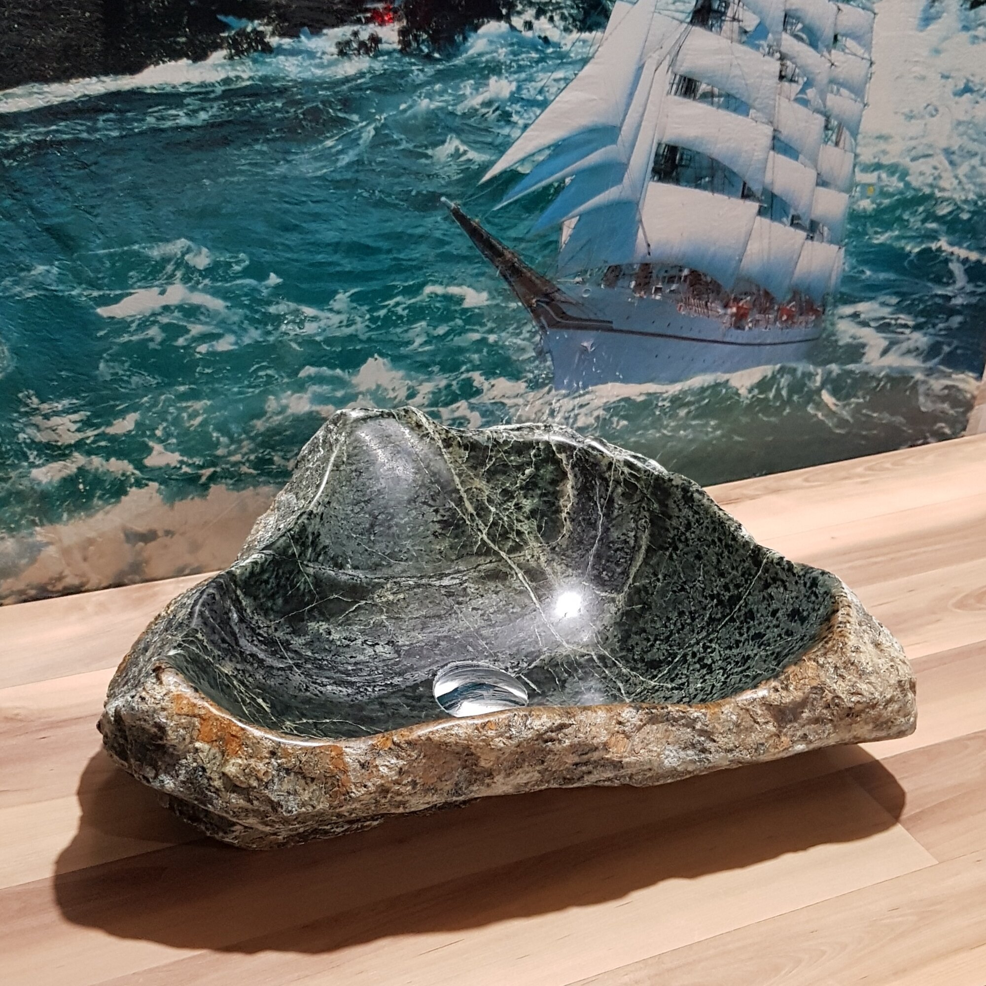 Раковина накладная на столешницу для ванной мойка каменная из натурального /речного/ горного камня Кавказа/45х31х11см