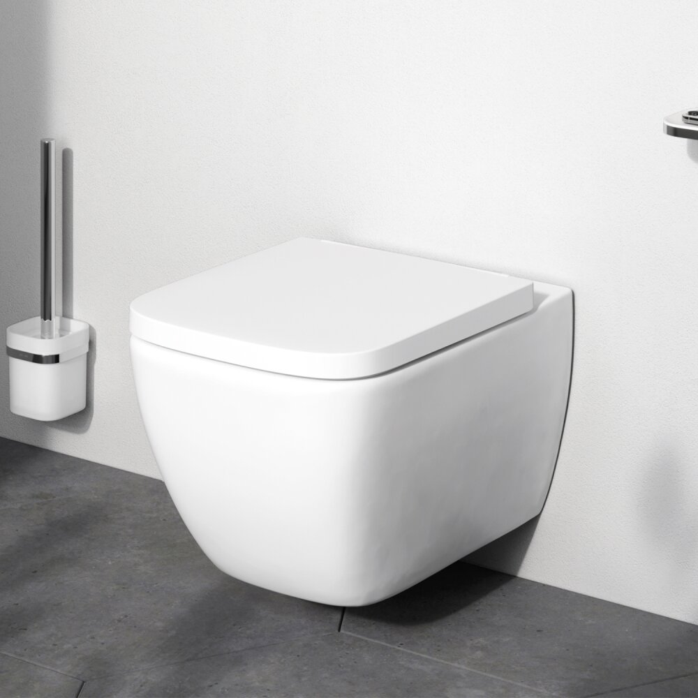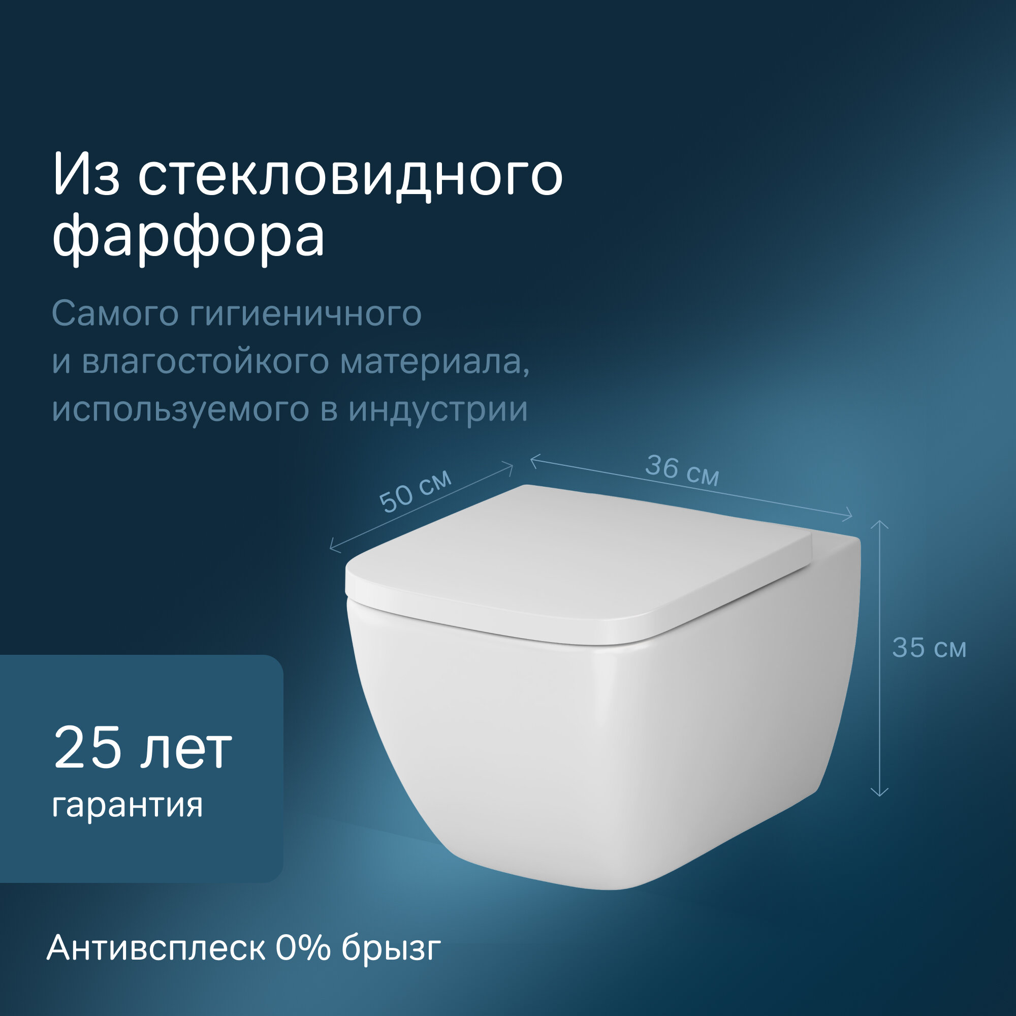 Унитаз подвесной безободковый AM.PM Gem C901701SC скрытый, быстросъемное сиденье с микролифтом из дюропласта, подвесные безободковые унитазы комплект FlashClean, антивсплеск, премиальный фарфор, гарантия 25 лет, Германия