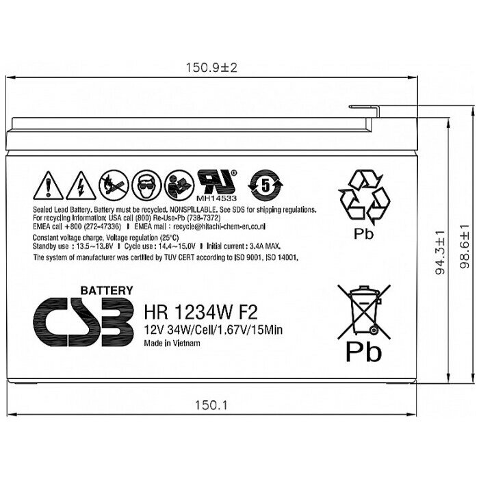 Аккумулятор для ИБП CSB HR1234W интересное: