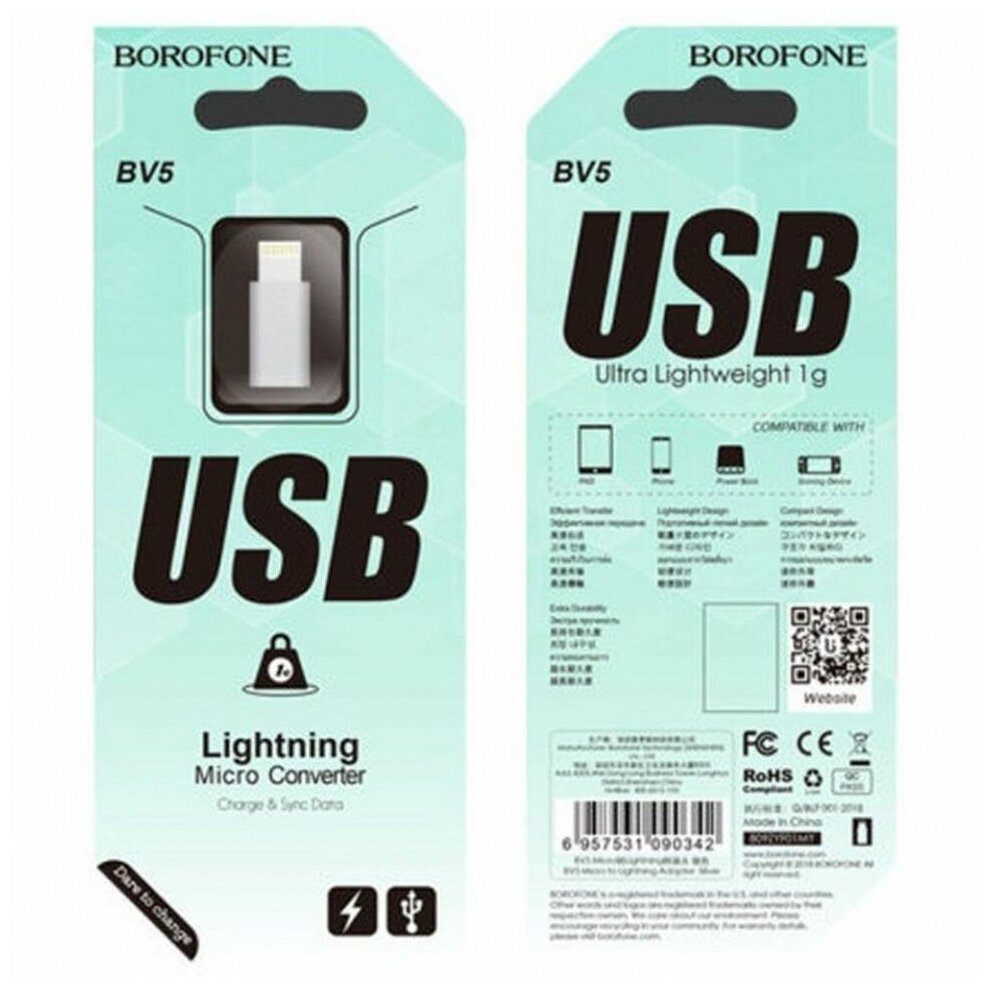 Переходник BOROFONE BV5, MicroUSB - Lightning, серебристый