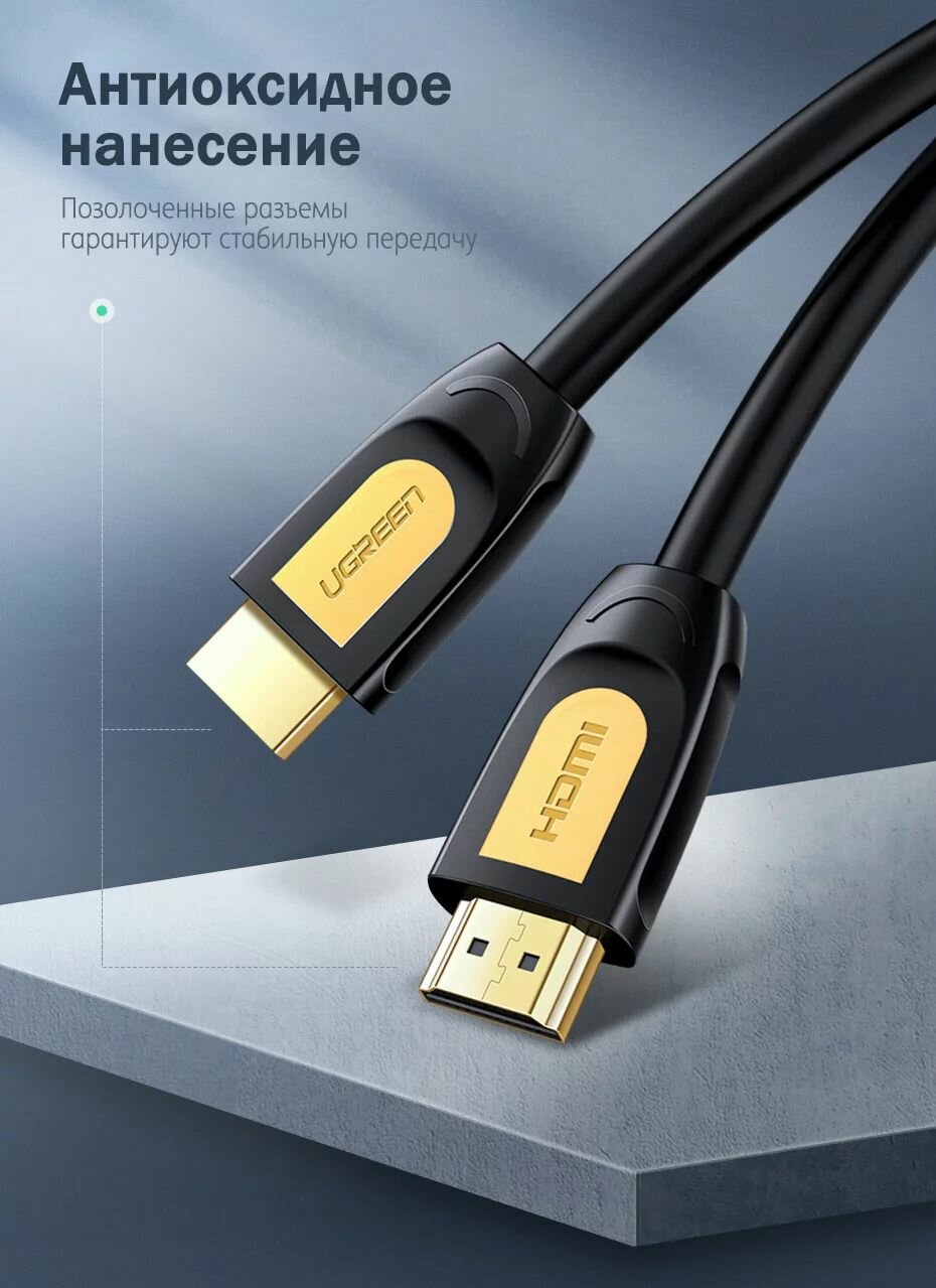 СохранитьКабель UGREEN HD101 (10170) HDMI Male To Male Round Cable. Длина: 5 м. Цвет: черно-желтый. интересное: