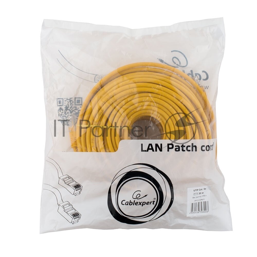 Патч-корд UTP Cablexpert жёлтый категории 5e длина 30 метров PP12-30M/Y