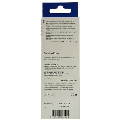 Купить Чернила EPSON 115 (C13T07D34A) для СНПЧ L8160/L8180, пурпурные, объем 70 мл, оригинальные