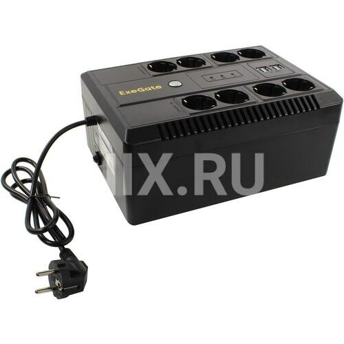 ИБП ExeGate NEO NNB-650. LED. AVR.8SH. CH <650VA/360W, LED, AVR, 8*Schuko, 4*USB-порта для зарядки, Black> EX295011RUS