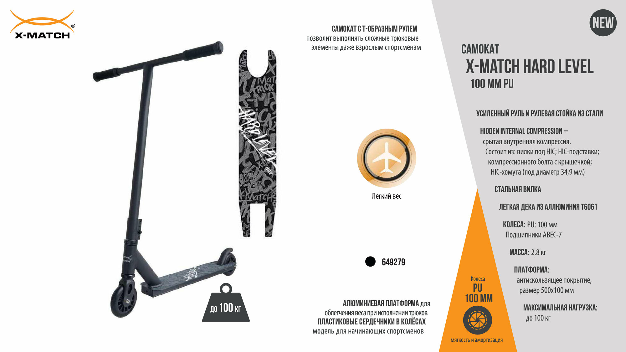 Самокат трюковой X-Match Hard Level,100мм. PU,дека 50х10см интересное: