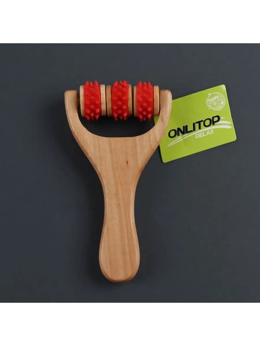 Купить Массажёр Барабан, 14.5 х 8 х 2 см, универсальный, 3 ролика с шипами, деревянный, цвет