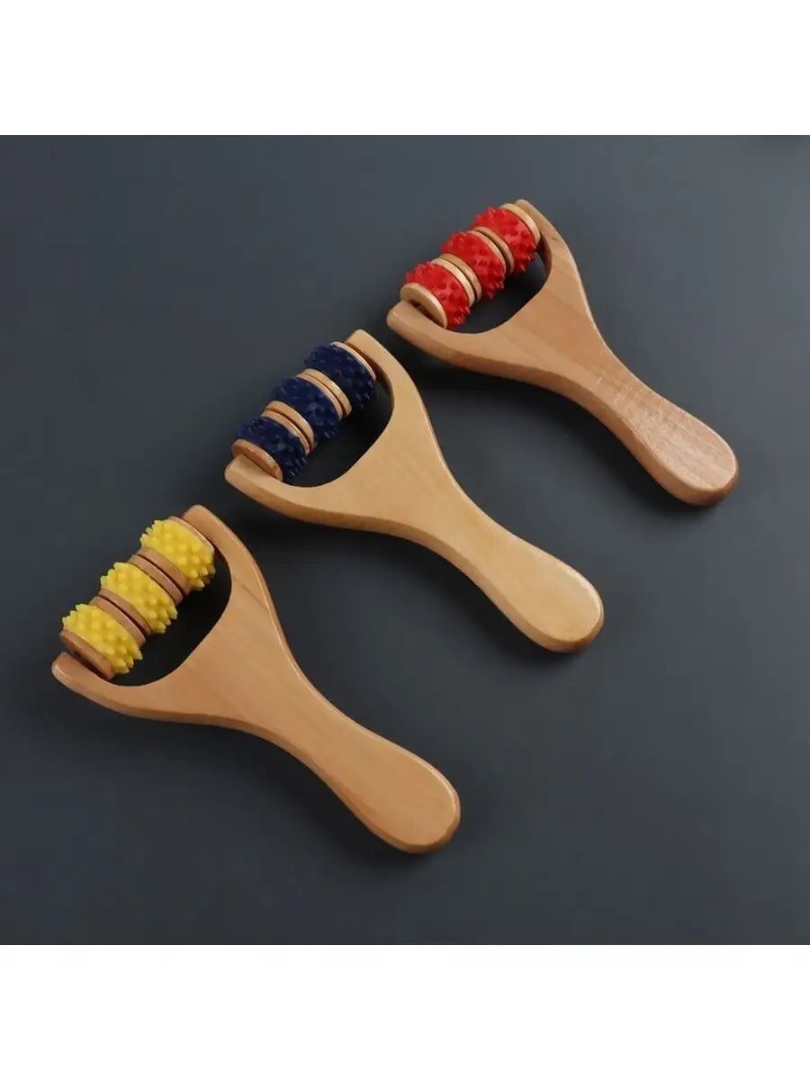 Массажёр Барабан, 14.5 х 8 х 2 см, универсальный, 3 ролика с шипами, деревянный, цвет интересное: