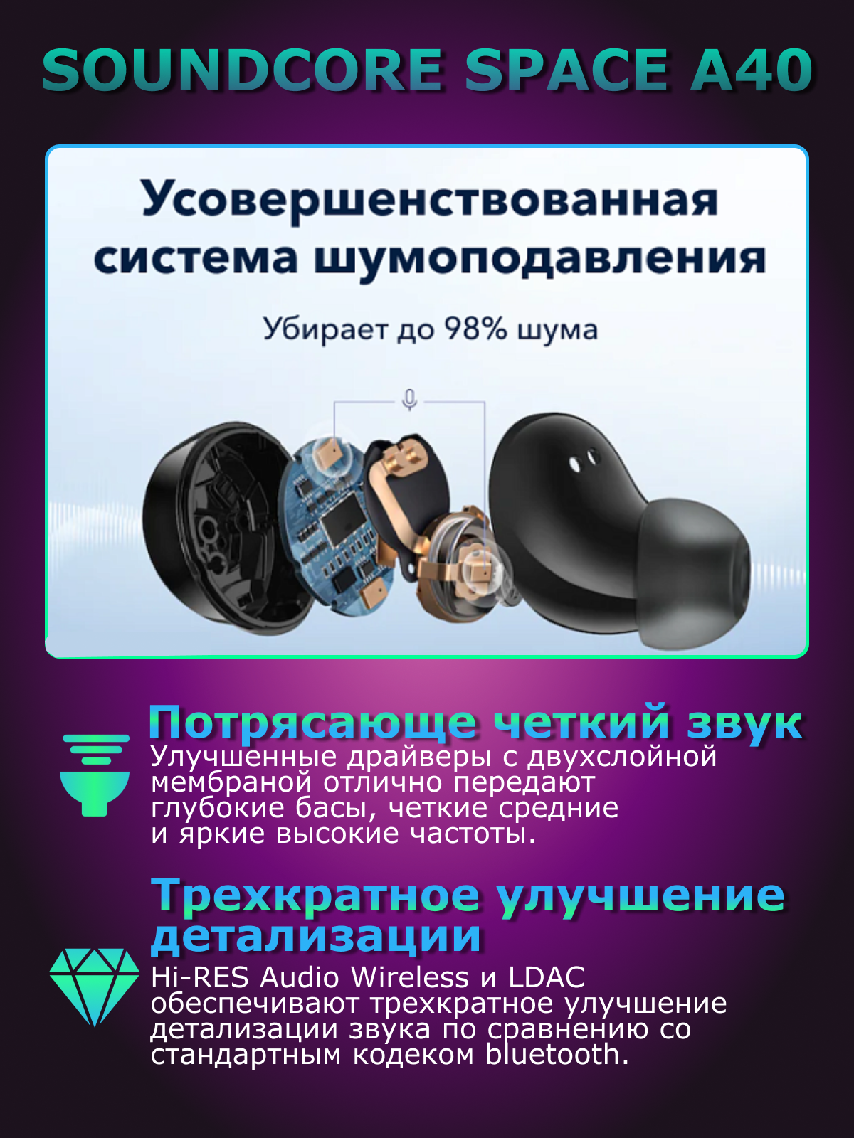 Ниже Вы можете прочитать отзывы на Беспроводные наушники Soundcore Space A40 (A3936), черный, ознакомится с подробными характеристиками, посмотреть интересные обзоры и фотографии на Беспроводные наушники Soundcore Space A40 (A3936), черный.