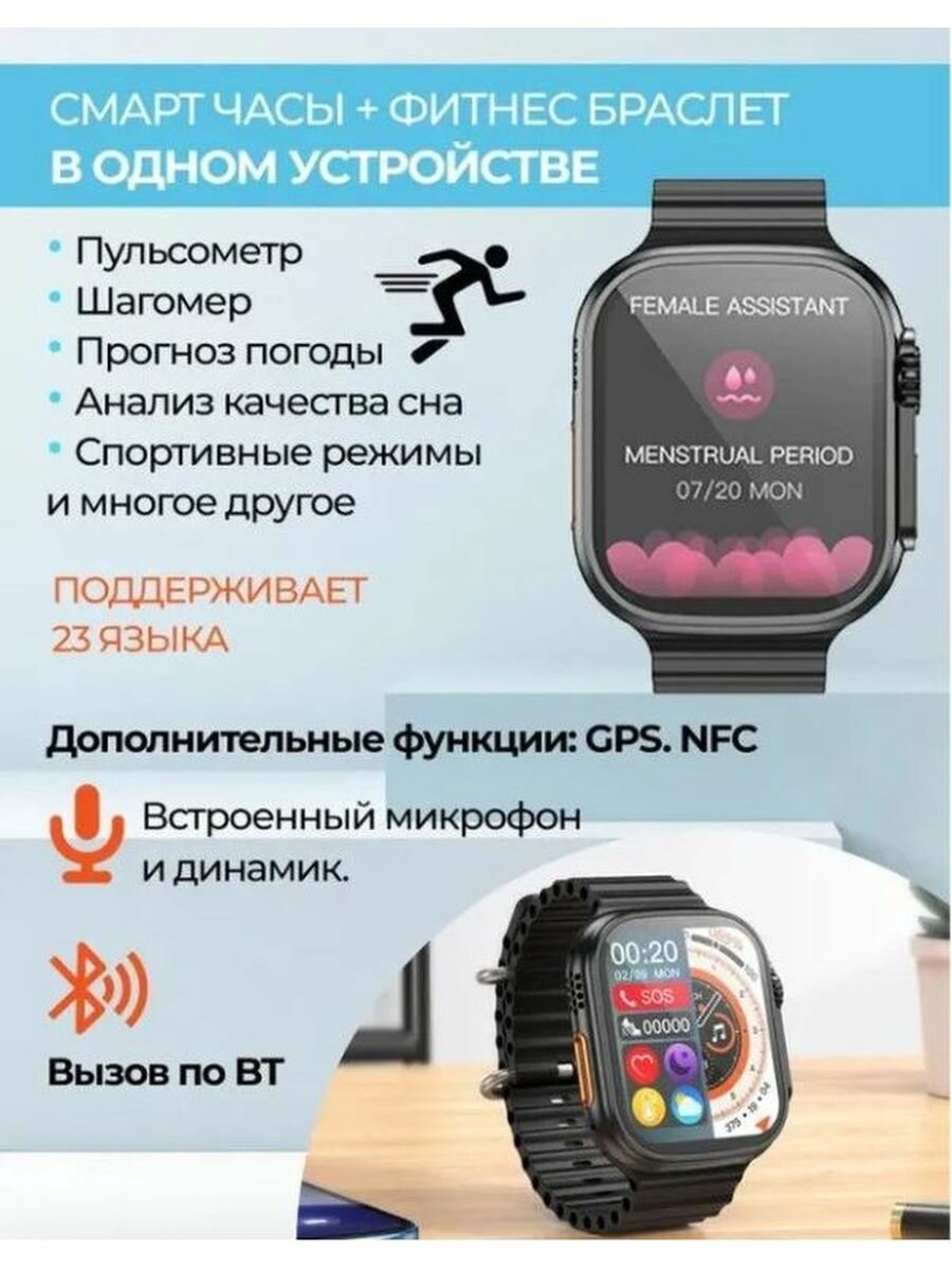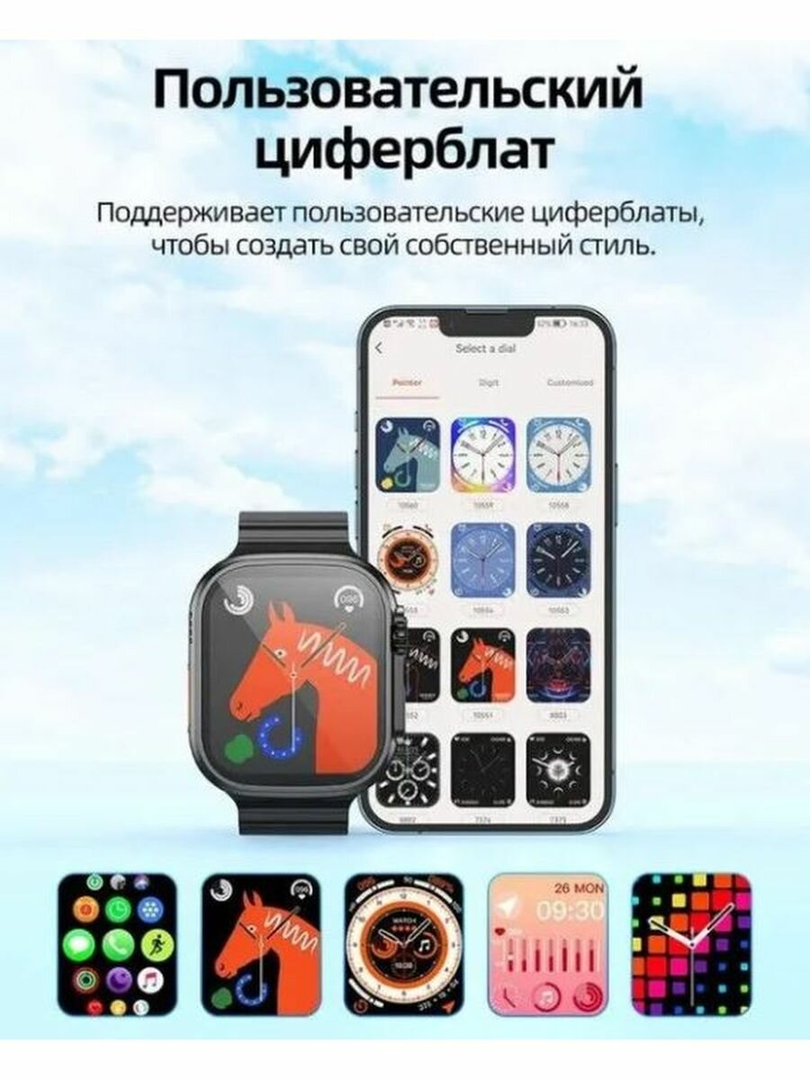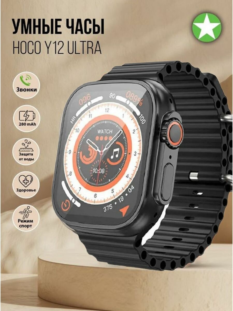 Купить Смарт-часы Hoco Y12 Ultra, 1.96, 240х280, Bt5.0, 320 мАч, поддержка вызова,Lightning,чёрные Hoco 988