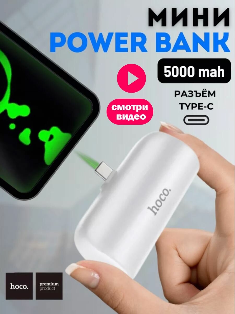 СохранитьВнешний аккумулятор повербанк Power bank HOCO J106 Mini для Type-C 5000mAh белый с подставкой / Портативное зарядное устройство для телефона интересное:
