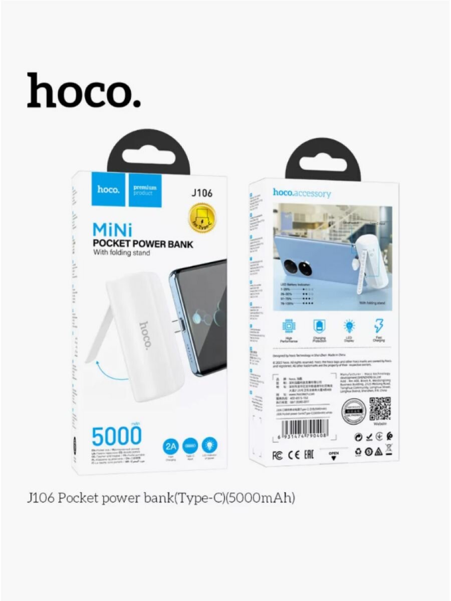 Ниже Вы можете прочитать отзывы на Внешний аккумулятор повербанк Power bank HOCO J106 Mini для Type-C 5000mAh белый с подставкой / Портативное зарядное устройство для телефона, ознакомится с подробными характеристиками, посмотреть интересные обзоры и фотографии на Внешний аккумулятор повербанк Power bank HOCO J106 Mini для Type-C 5000mAh белый с подставкой / Портативное зарядное устройство для телефона.
