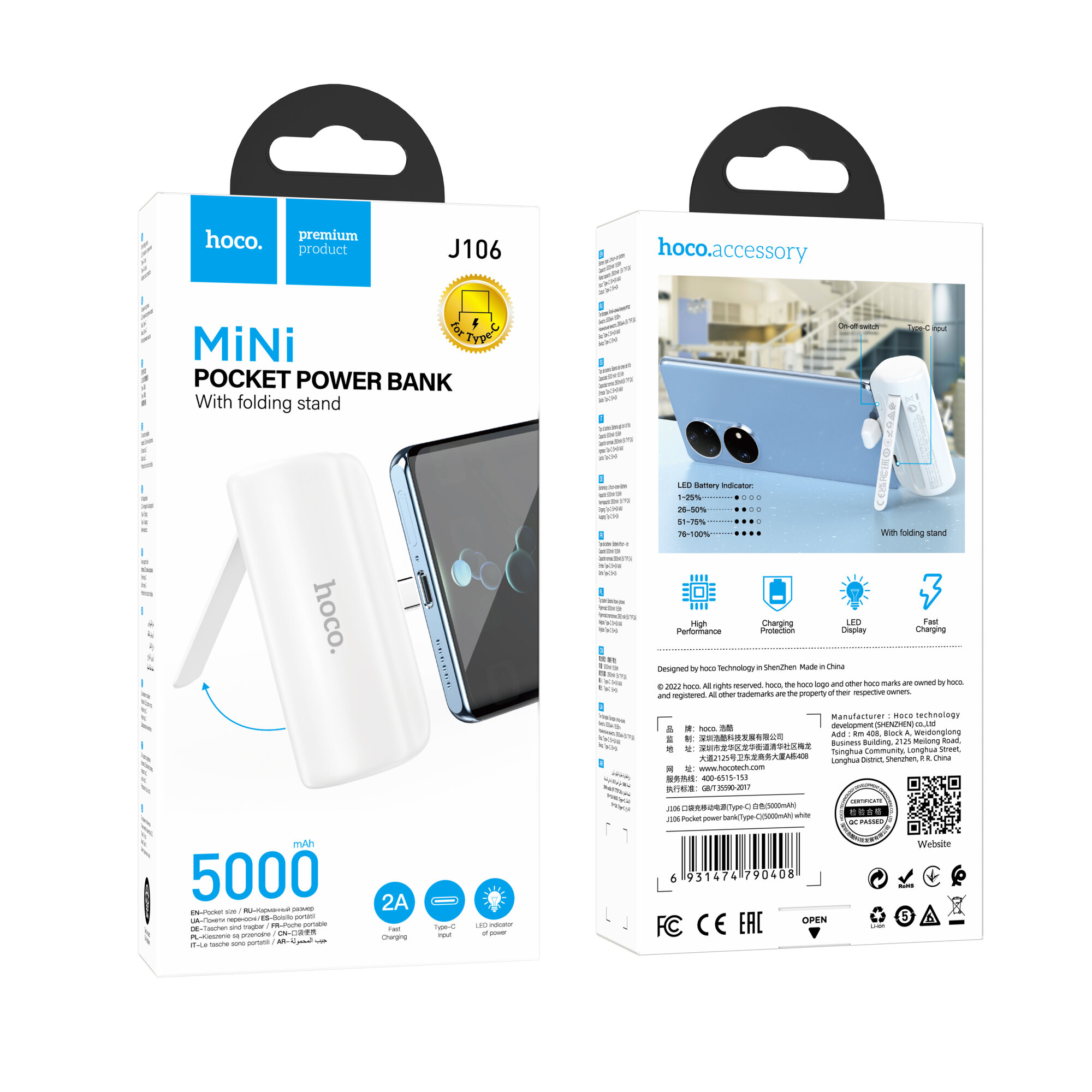 Купить Внешний аккумулятор повербанк Power bank HOCO J106 Mini для Type-C 5000mAh белый с подставкой / Портативное зарядное устройство для телефона