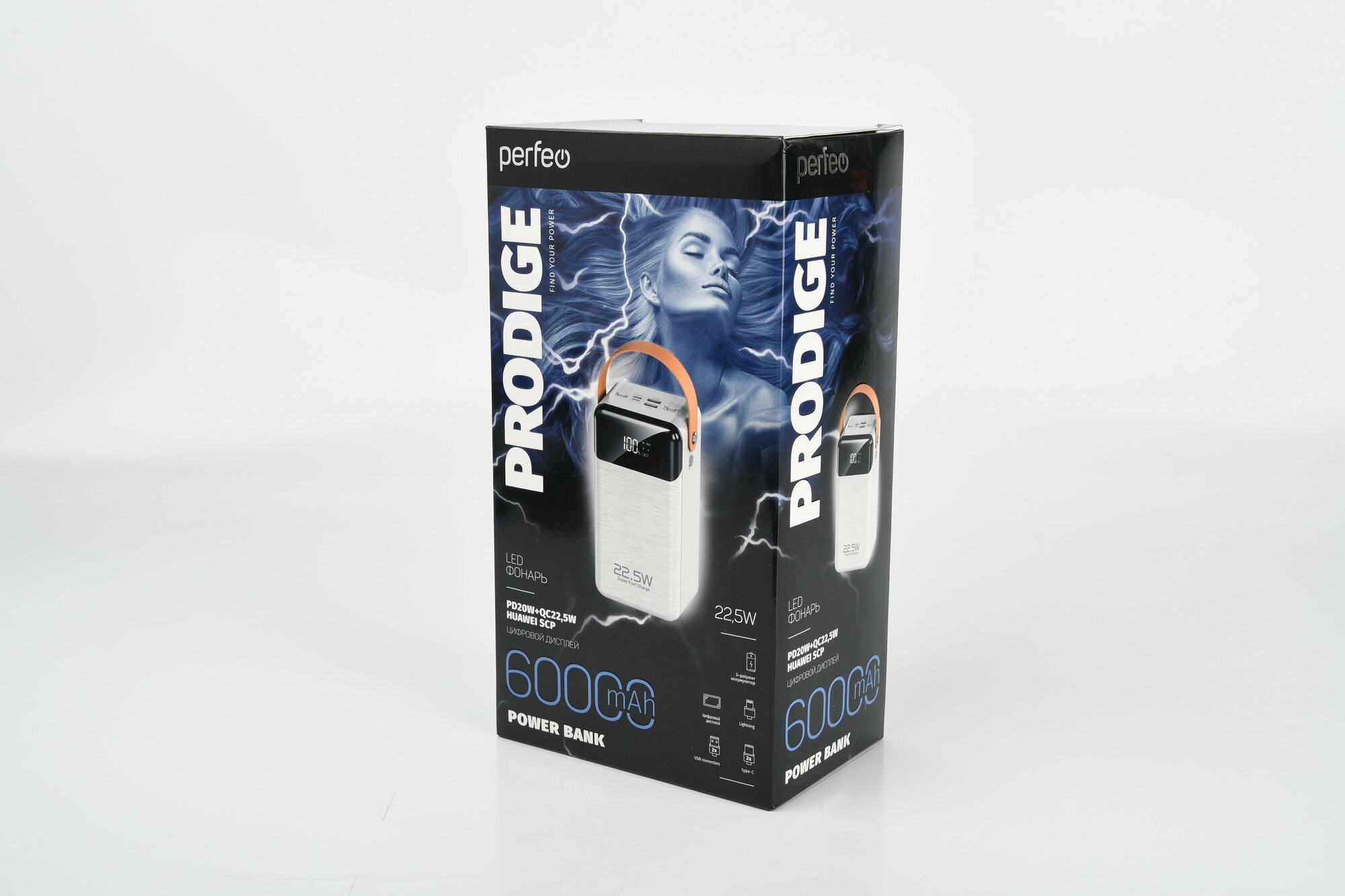 Внешний аккумулятор 60000mAh Perfeo Powerbank PRODIGE LED/PD + QC 3.0/Type-C/Lightning/2 USB/Выход: 5A, max 22.5W/белый электротовар интересное: