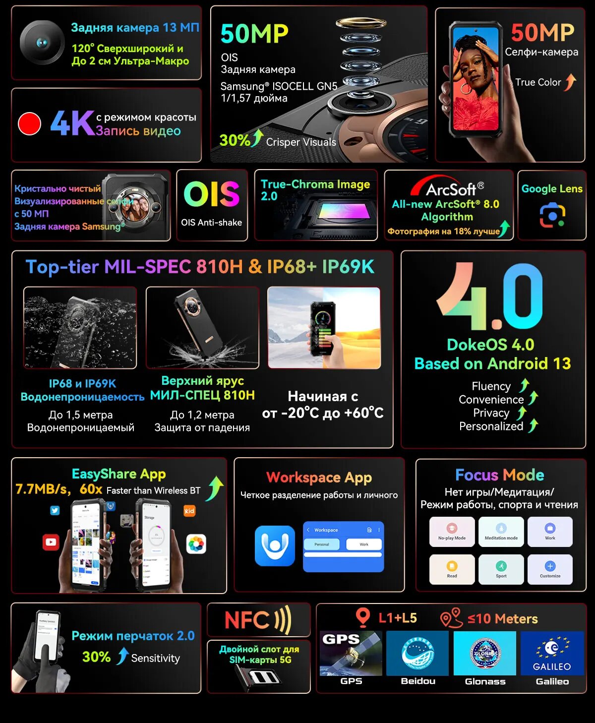 | Геопозиционирование | BeiDou / GPS / Galileo / ГЛОНАСС |